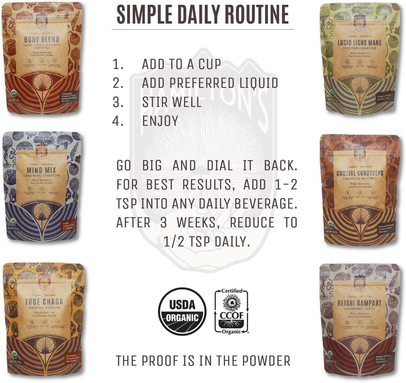 No Fillers or Components: Comprises solely natural entire mushrooms. No fillers, grains, or synthetic elements.