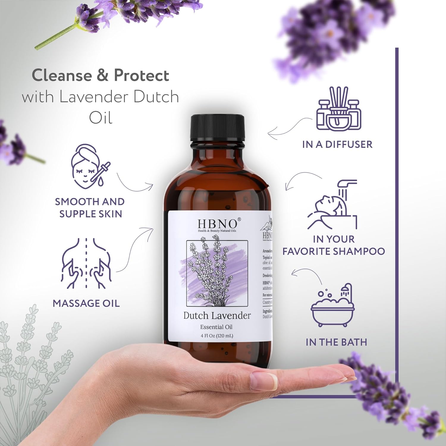 Be the first to review “HBNO California Bottled Dutch Lavender Essential Oil 4 fl oz (120ml) – Natural Lavender Oil for Skin, Perfect for Cleaning, Aromatherapy, DIY & Diffuser”