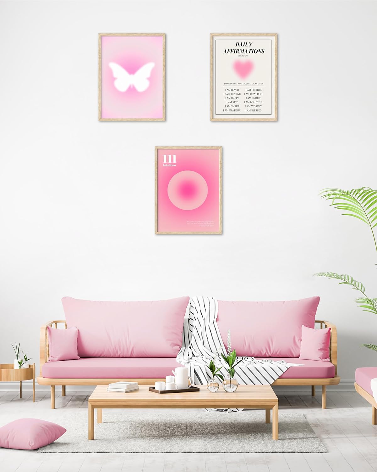 Pink Each day Affirmations Unframed Canvas Print Wall Artwork unframed pink butterfly wall prints 3 piecesunframed pink butterfly wall prints 3 pieces