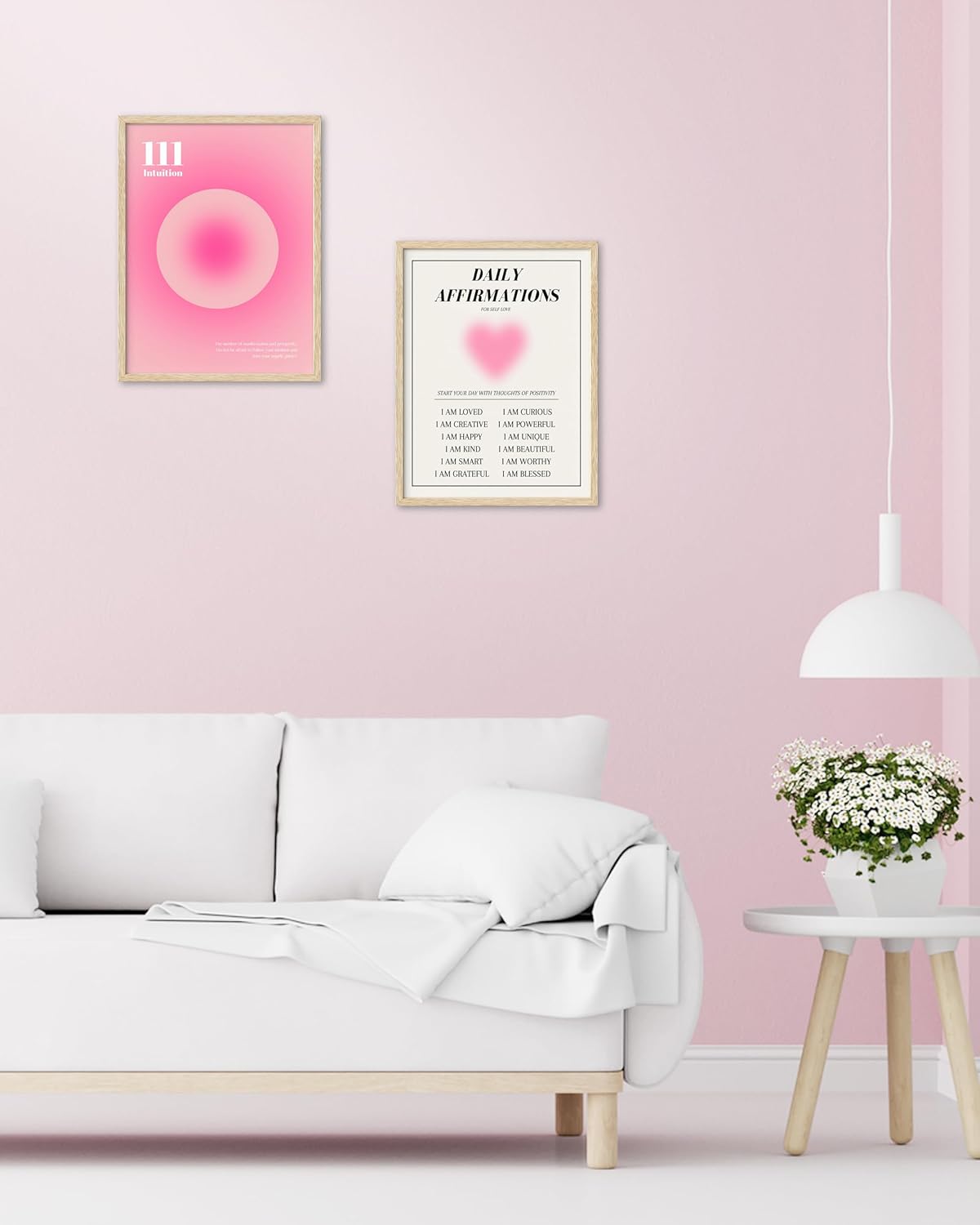 Aesthetic Religious Posters: Contains gentle pink tones, angel quantity “111”, and a symbolic butterfly to mirror instinct, transformation, and female vitality