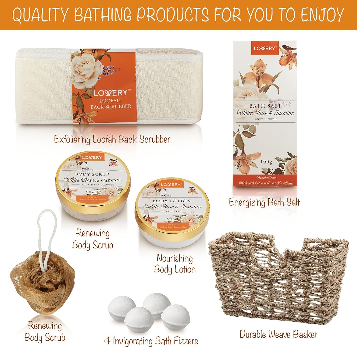 WHITE ROSE & JASMINE FRAGRANCE❤ The calming scent of White Rose & Jasmine will gently ease you right into a state of peace and well-being. Really feel your troubles fade as you soak, scrub and slather your approach to silky-smooth pores and skin. This elegant perfume is infused with heat, floral notes and completely balanced, for a deal with to your senses that’ll final all day.