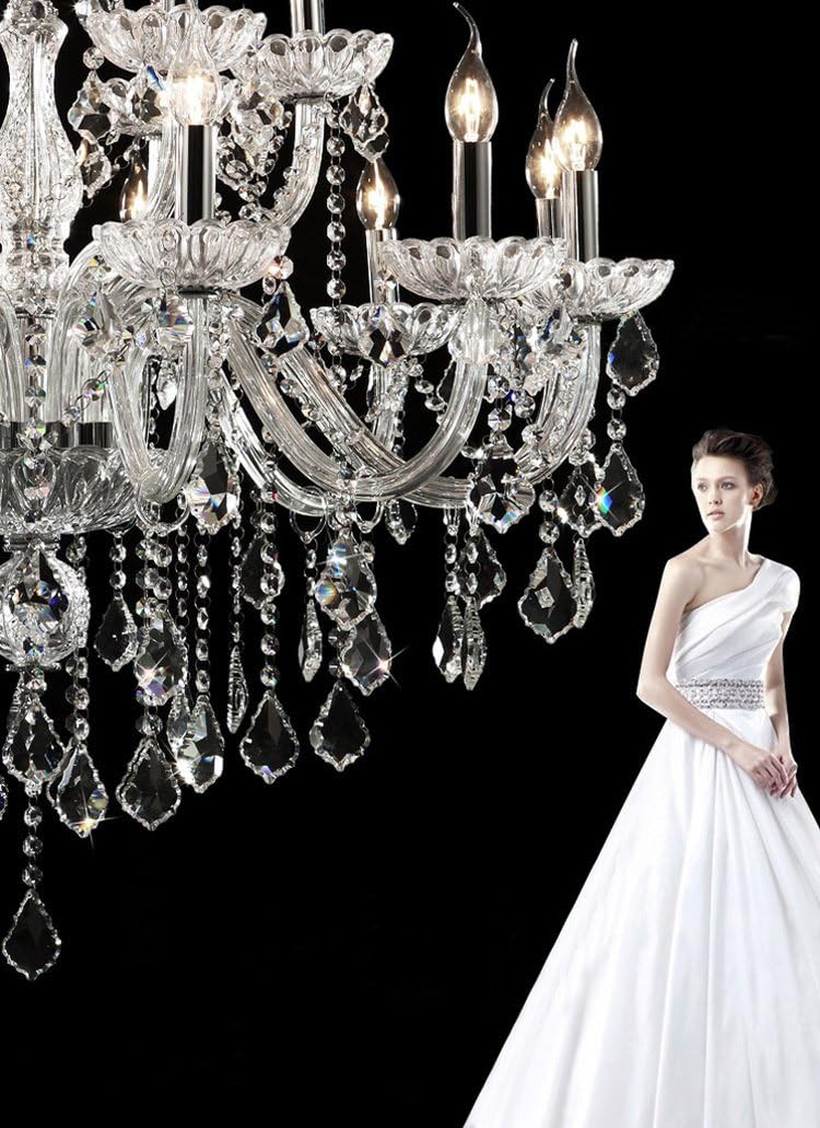 HungGwun Clear 18 Lights K9 Crystal Chandelier Modern Luxurious Light Candle Pendant Lamp Ceiling Kitchen Living room Lighting for Dining Room Bedroom Hallway Entry 37×30 Inch Gifts (Clear Color)