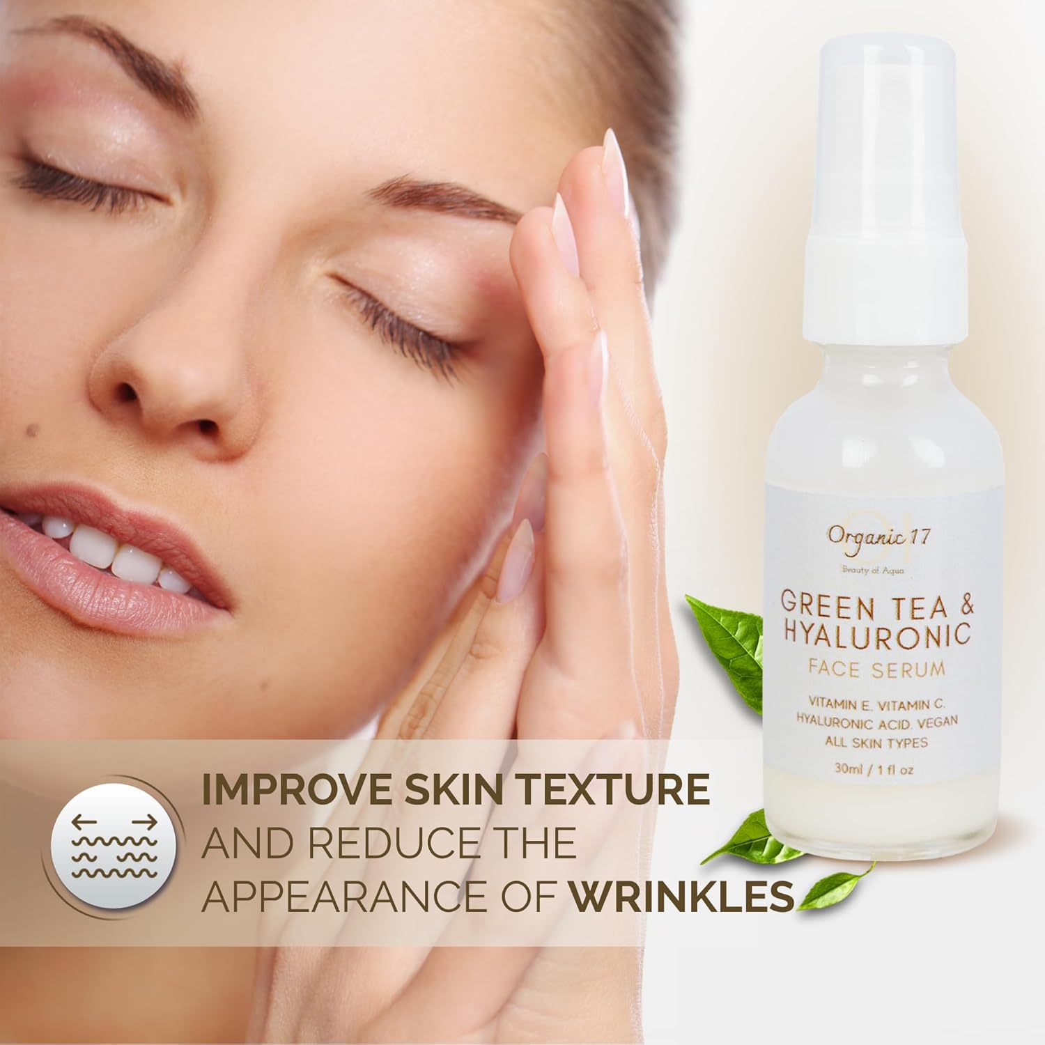 Be the first to review “Hyaluronic Acid & Green Tea Face Serum – Anti-Aging Hydrating Serum with Vitamins C + E for Glowing Skin, Vegan & Cruelty-Free for All Skin Types – 30ml”
