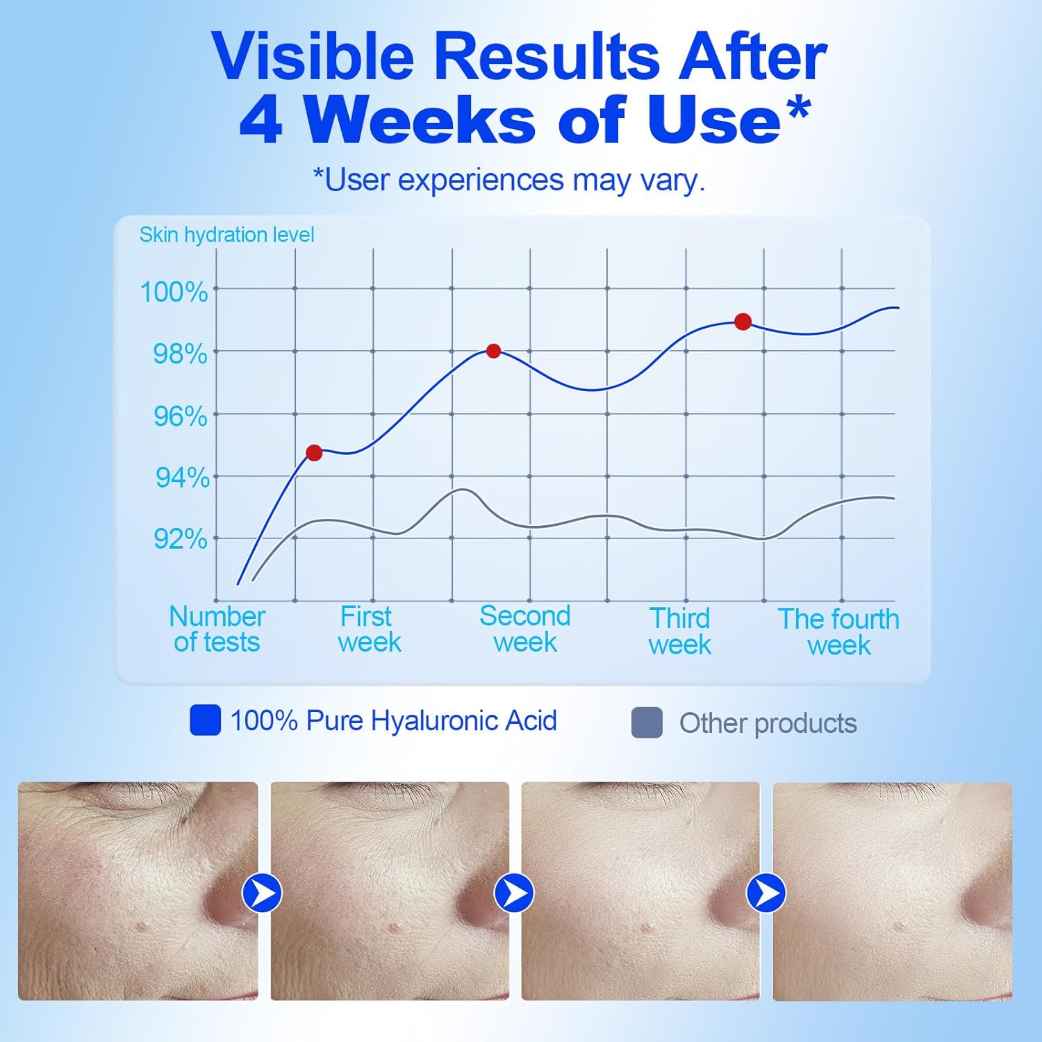 PURE, POWERFUL HYDRATION BOOST FOR ALL SKIN TYPES——Expertise intense moisture infusion with our 100% pure hyaluronic acid powder. This concentrated method helps scale back the looks of nice traces, plumps pores and skin, and helps a more healthy, dewier complexion for delicate, dry, and oily pores and skin