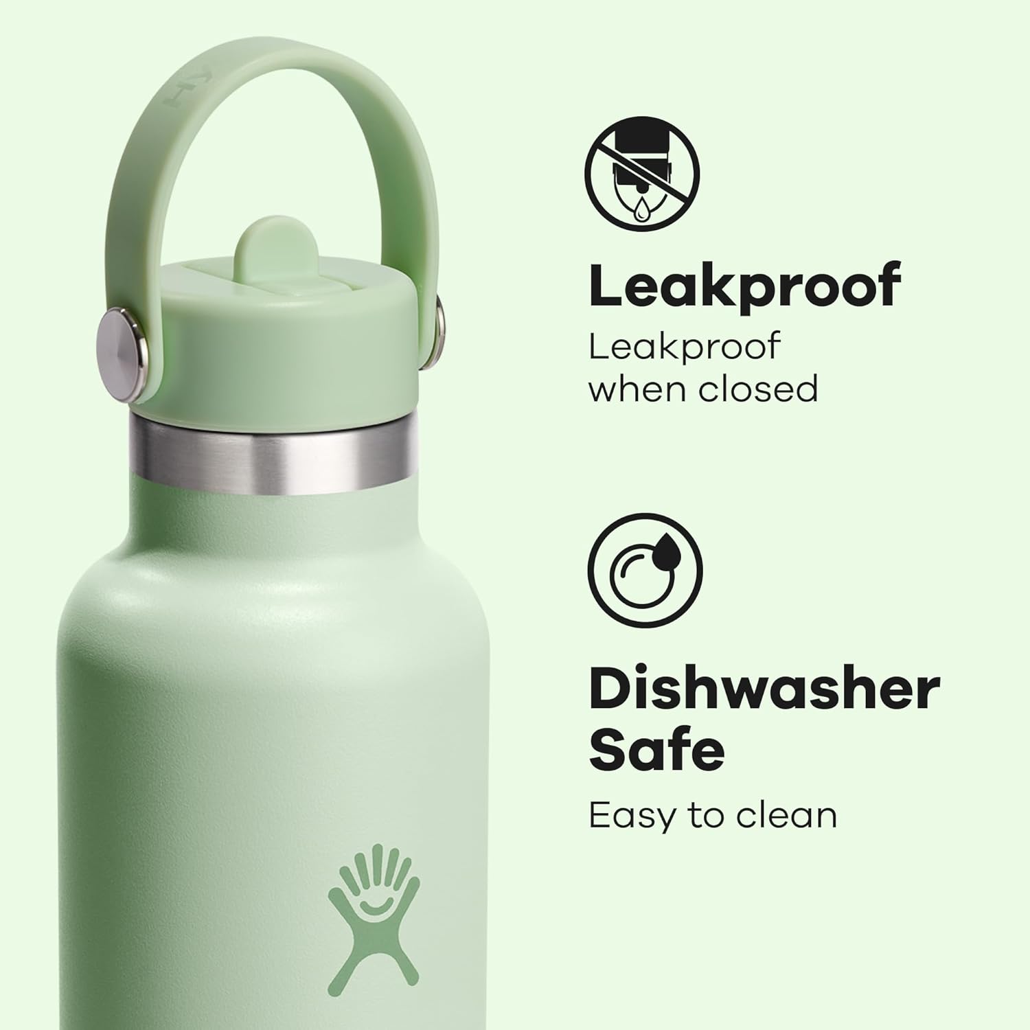 24 OZ ALOE GREEN STRAW BOTTLE: A 24 oz Normal Mouth water bottle with small ingesting spout with Hydro Flask’s leakproof Flex Straw Cap—straightforward to fill, straightforward to drink. Open it up, add your ice, and flip to sip. The insulated stainless-steel retains it chilly for as much as 24 hours.
