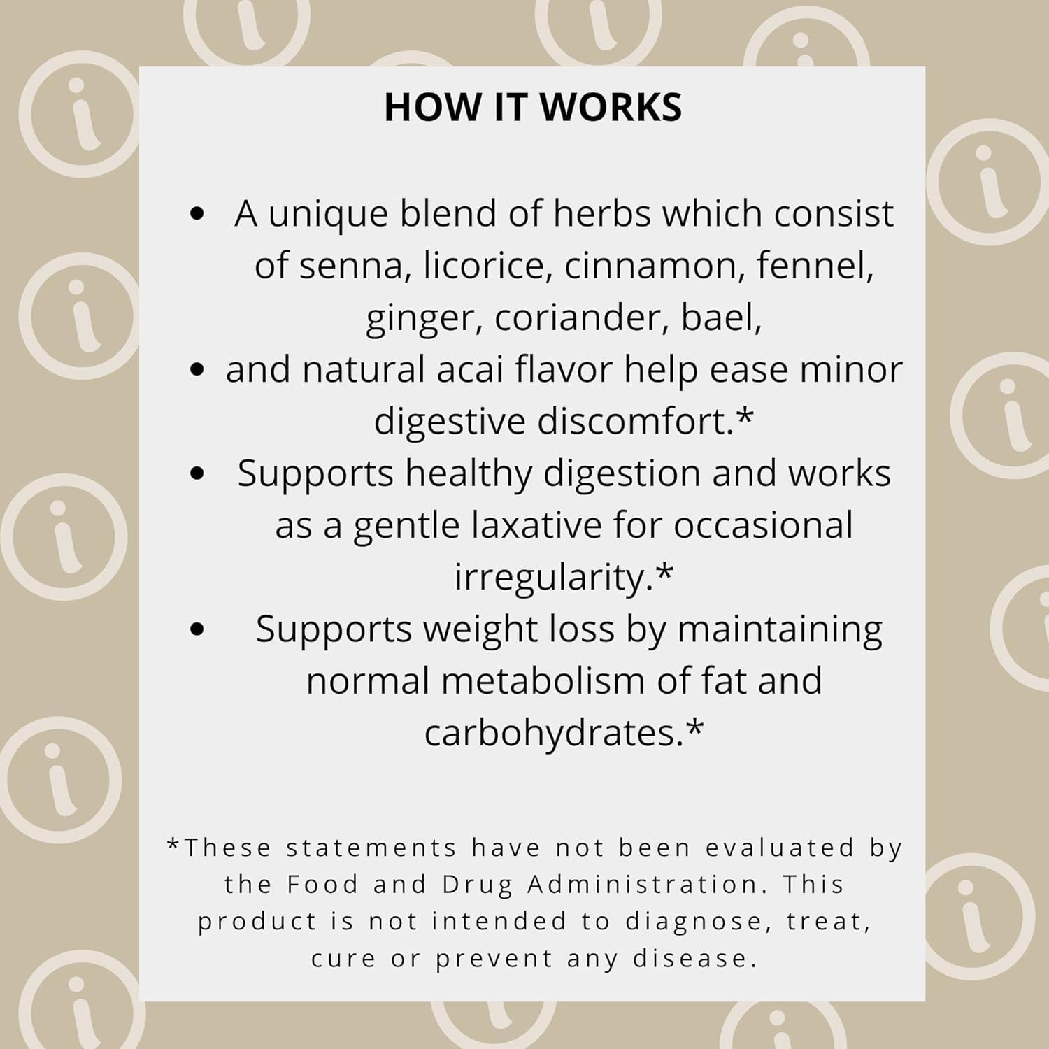 Each teas are 100% pure merchandise that work as mild laxatives for infrequent irregularity.*