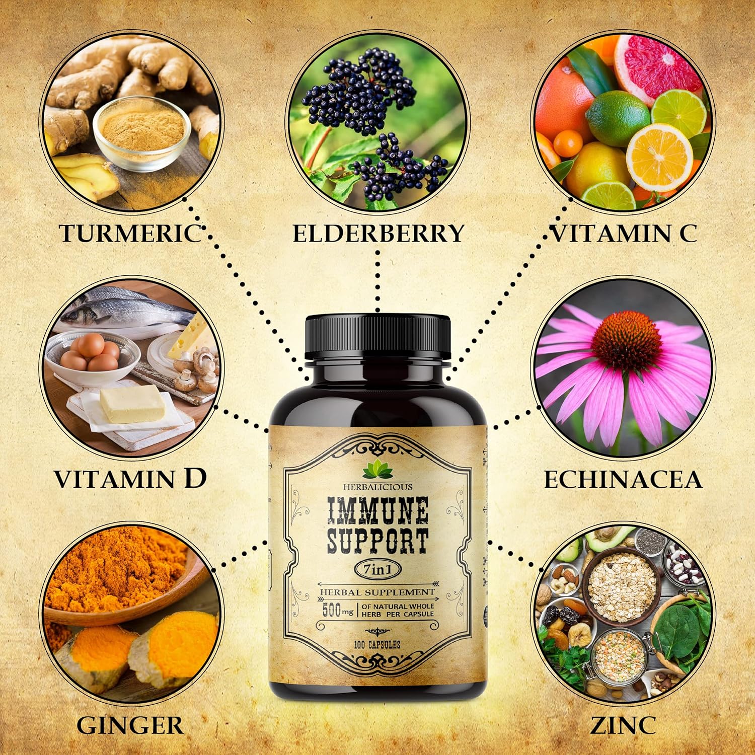 Shore Up Your Defenses – Bolster your immune system. Our natural 7-in-1 immune booster vitamin dietary supplements are powered by vitamin C and zinc, vitamin D3, elderberry, echinacea, turmeric, and ginger.