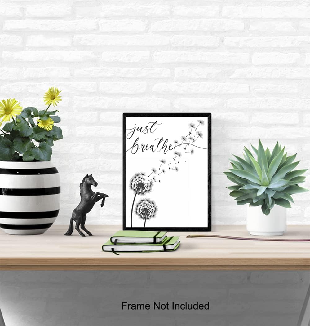 Inspiration Motivation Zen Wall Art & Decor – Just Breathe Wall Art – Encouragement Gift for Woman – Positive Quotes Decor – Home Office Living room Bedroom Artwork – Meditation Print UNFRAMED