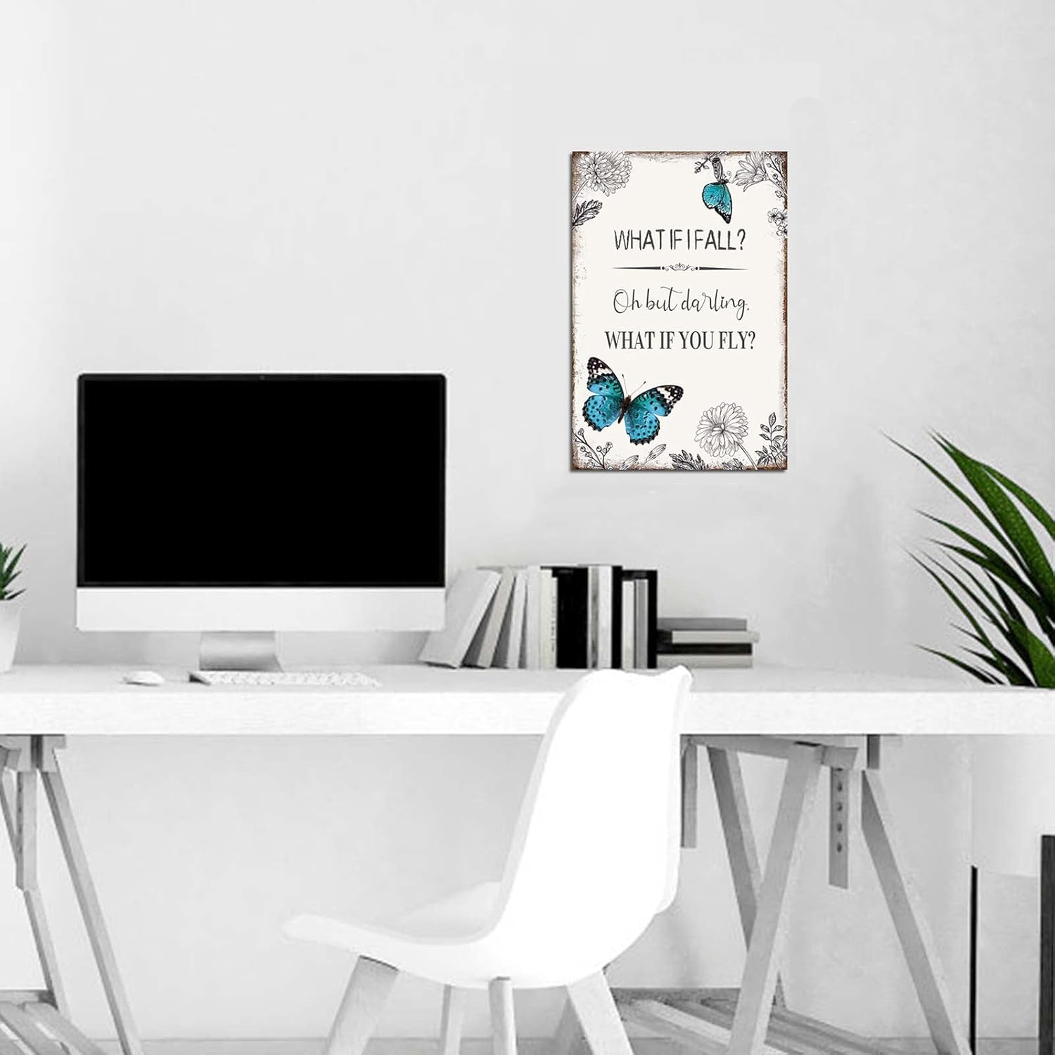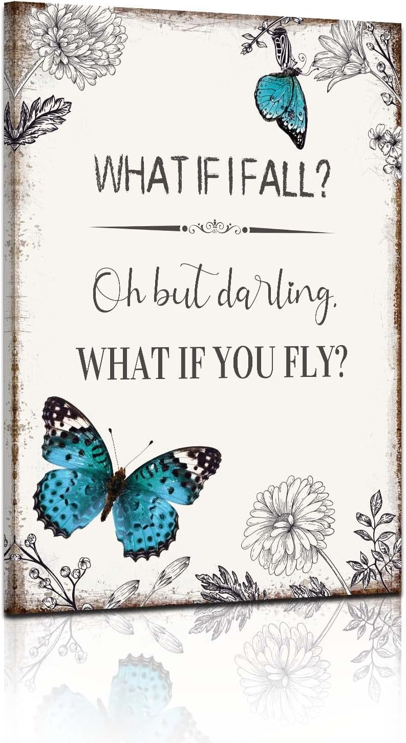 Be the first to review “Inspirational Quote Canvas Wall Art : Motivational Posters Blue Butterfly Flower Picture Framed, What if I Fall Positive Affirmations Bedroom Decor Gift for Women Girl 10″ x 15″”