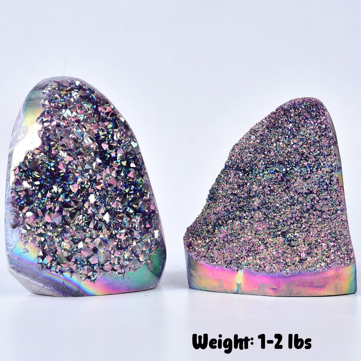 SPECIFICATIONS – This Titanium Aura Amethyst Geode weights 1 to 2 lbs, the amethyst cluster grew on a gray volcanic rock referred to as basalt, which is lower to type a base in order that your cluster stands upright. Colour: rainbow.