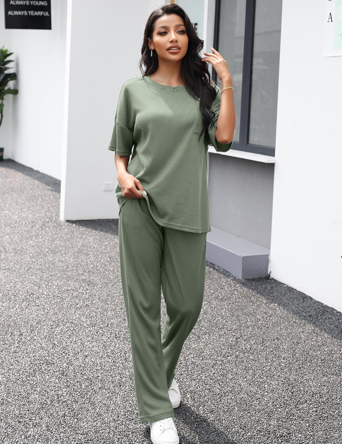 Be the first to review “JiniGolla Womens Pajama Sets Waffle Knit Short Sleeve Shirt with Long Pajama Pants Soft Sleepwear Pj Lounge Sets”
