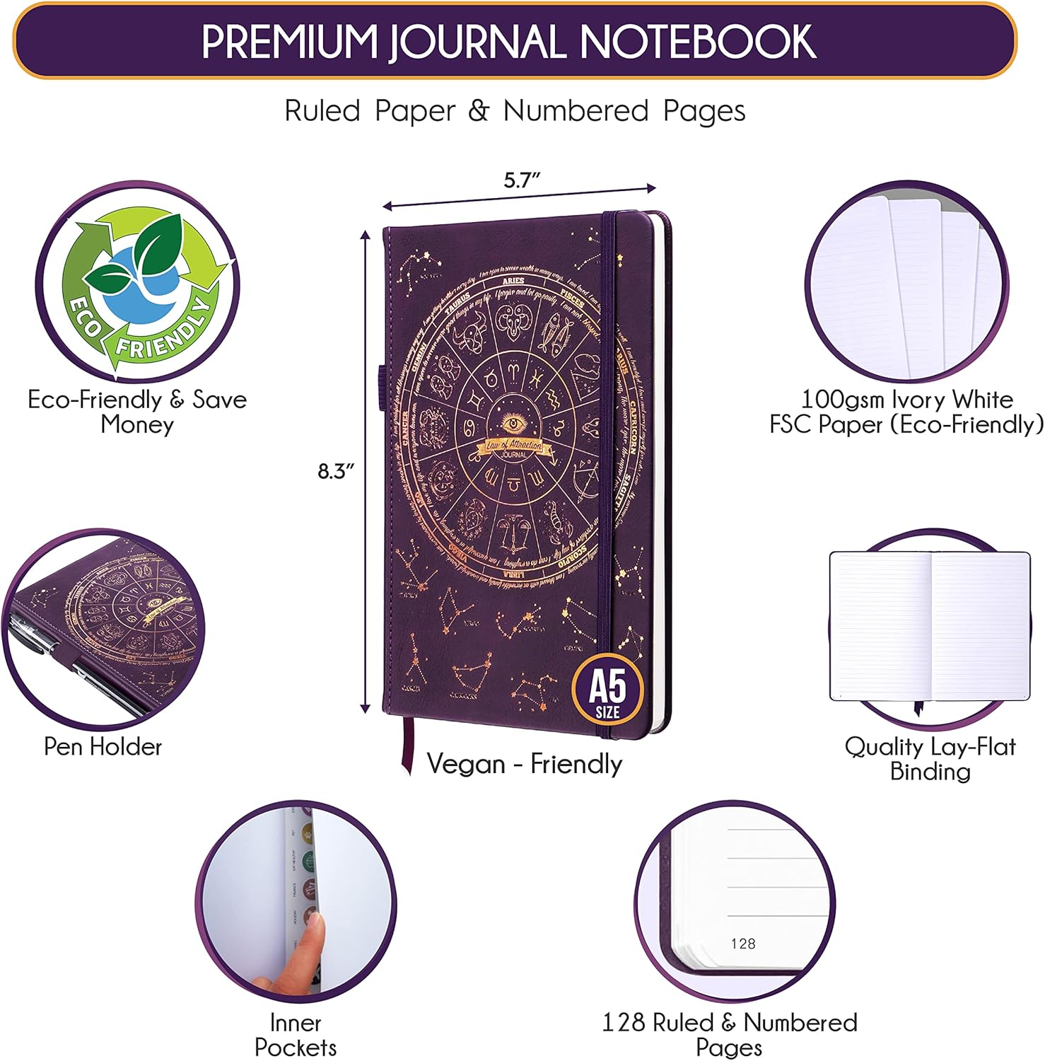 LIGHTWEIGHT AND COMPACT – Light-weight, transportable and compact – 5.7” x 8.3” and solely weighs 0.75 kilos. This dominated & numbered journal simply suits in your purse or laptop computer bag. It is slimmer and narrower than a typical planner. Its compact dimension and light-weight design mean you can carry it all over the place.