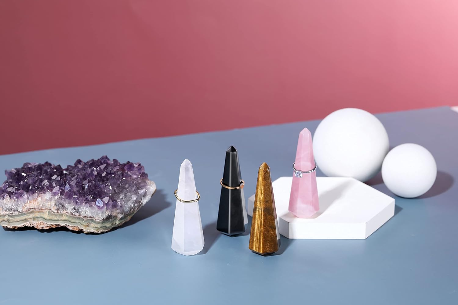 Jovivi Crystal Ring Holder Tower Crystals and Therapeutic Stones Factors 6 Faceted Show Stand for Jewellery Ring