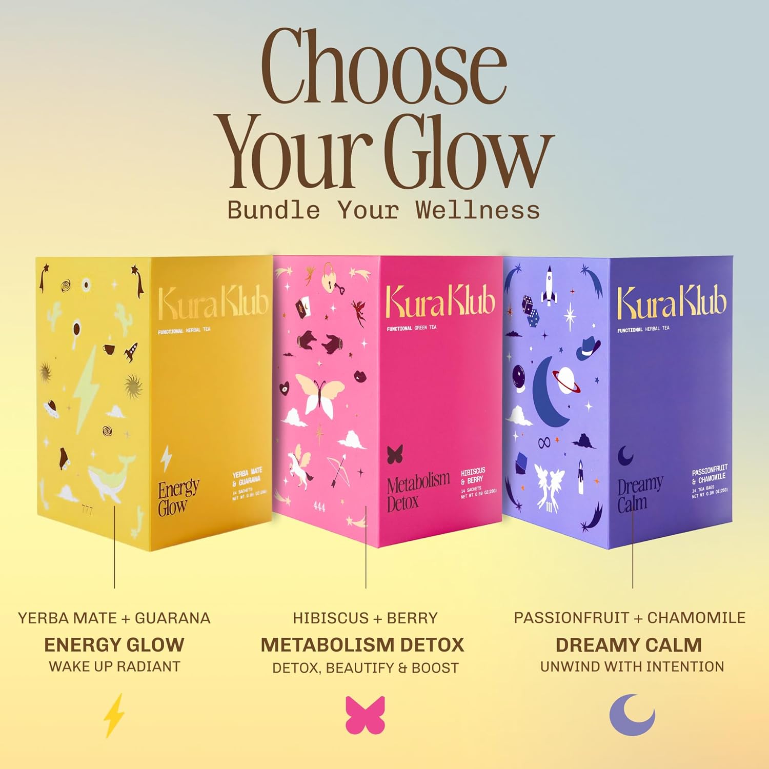 Kura Klub Metabolism Herbal Detox Tea and Yerba Mate Energy Glow TeaKura Klub Metabolism Herbal Detox Tea and Yerba Mate Energy Glow Tea