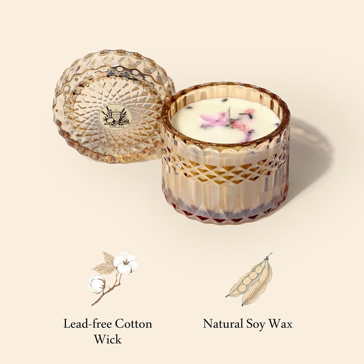 ✅Lovely Reusable Vessel: The sturdy embossed glass jar turns into a classy decor piece post-burn — reuse as a conceit organizer, tea storage, or minimalist vase.
