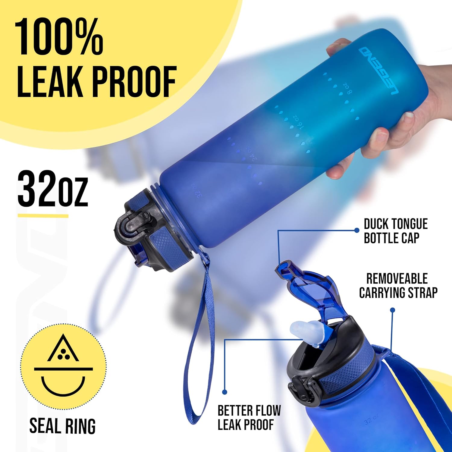 Legend Plastic Water Bottle with Time Tracker – BPA-Free Water Bottle with Measurements, Leak Proof Water Bottle Tracker for Gym Workout & Office, Motivational Water Bottle with Time Marker 32 oz
