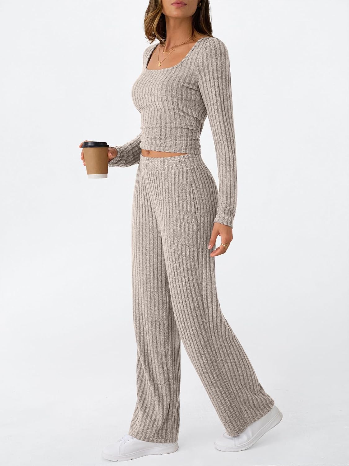 LILLUSORY Womens Lounge Sets 2 Piece Outfits Long Sleeve Two Piece Pajamas Ribbed Knit Fall 2025 Outfits Casual Clothes