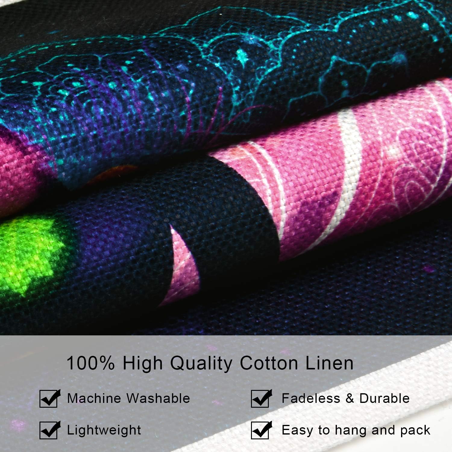 AMAZING MATERIAL: The pack of two yoga tapestries are made out of polyester, which is smooth, skin-friendly and lightweight weight. It’s sturdy, mechanically cleanable and no fading.