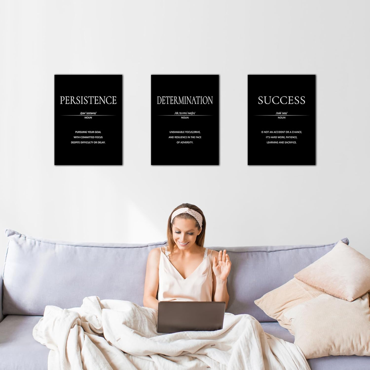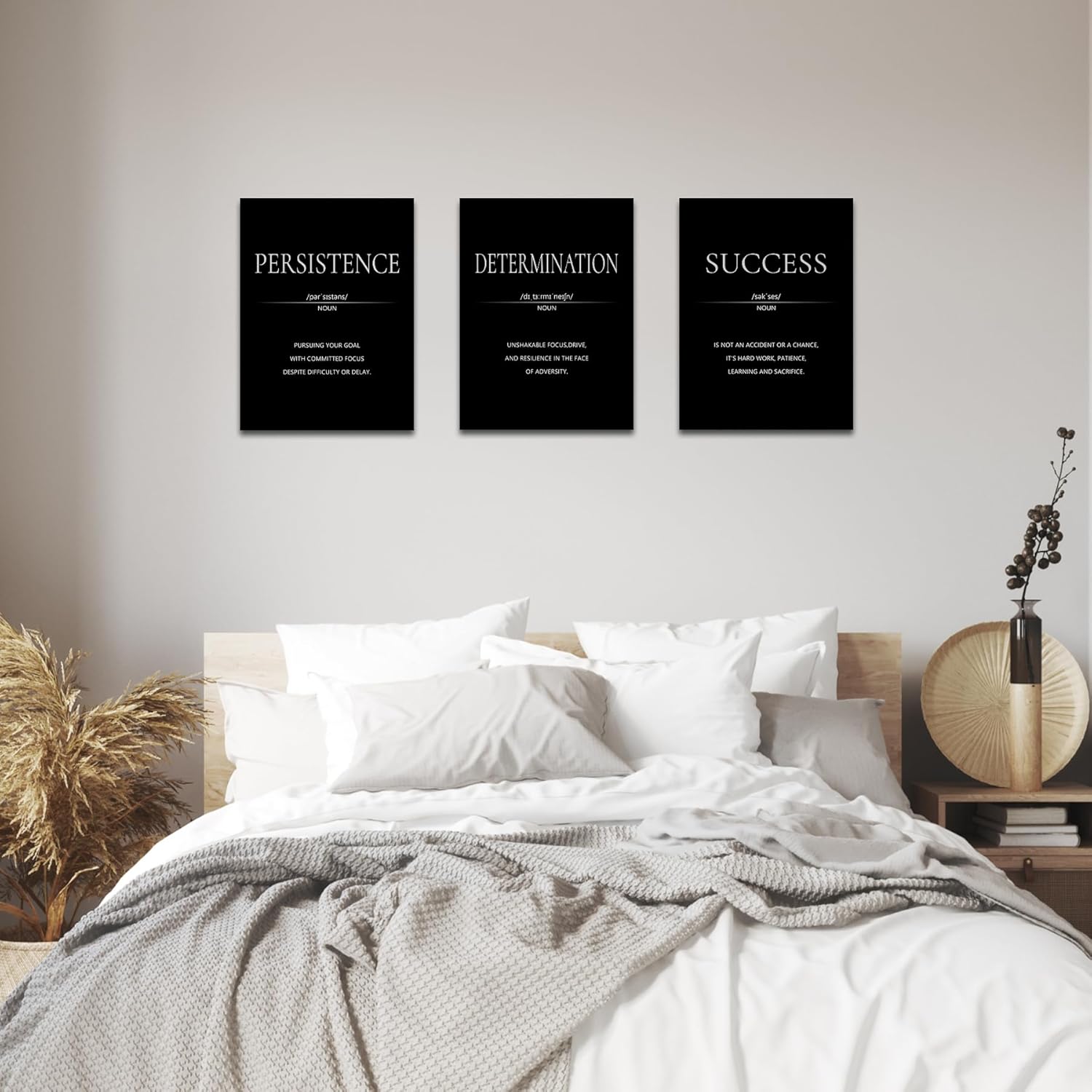 INSPIRATIONAL WALL ART – 3 motivational framed canvas in black and white: PERSISTANCE, DETERMINATION, SUCCESS quotes, every bit dimension: 12 x 16 inchs, the optimistic poster wallart made of top quality ink, waterproof and never straightforward to fade. motivational sentences may give you inspiration and motivation, and encourage you whenever you want it.