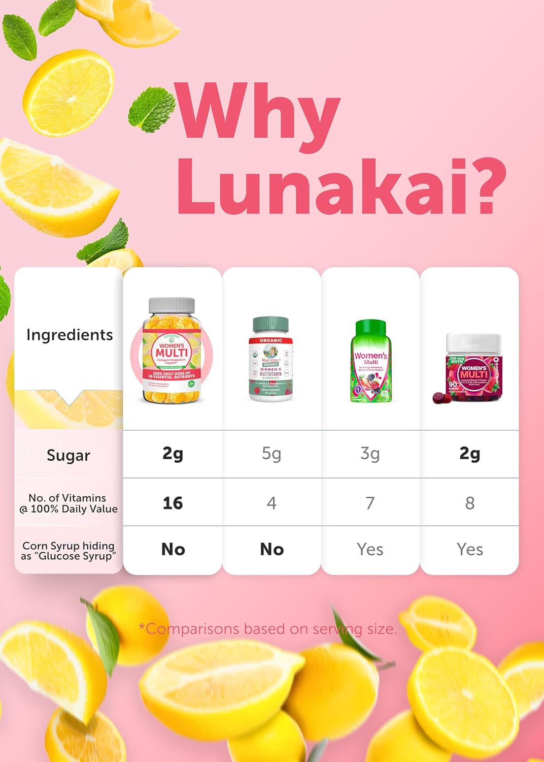 Simple-to-Chew Every day Gummies – No want for water or swallowing giant capsules; get pleasure from a easy, fulfilling multivitamin routine with Lunakai gummies.