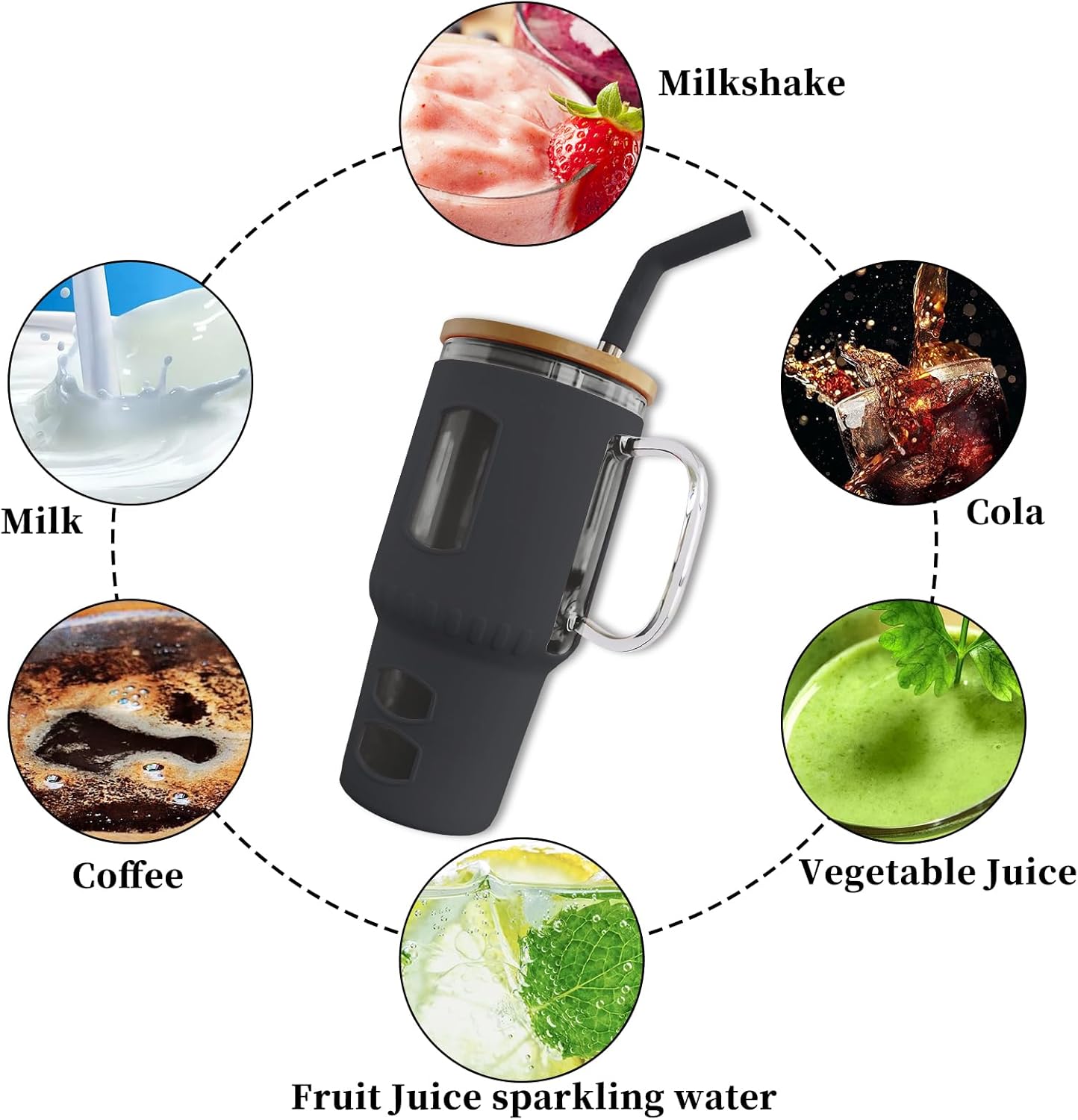 【EASY TO CARRY】 With an ergonomically designed deal with, our Glass Water Tumbler permits you to comfortably maintain and carry your drinks wherever. It holds as much as 32 oz, the proper measurement for chilly drinks, smoothies, and extra
