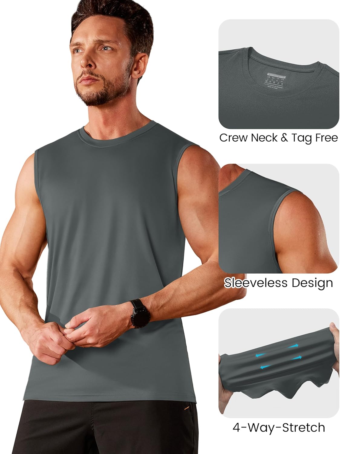 MAGCOMSEN Men’s UPF 50+ Tank Tops Quick Dry Workout Gym Sleeveless Muscle Shirts Summer Beach Swim Shirt