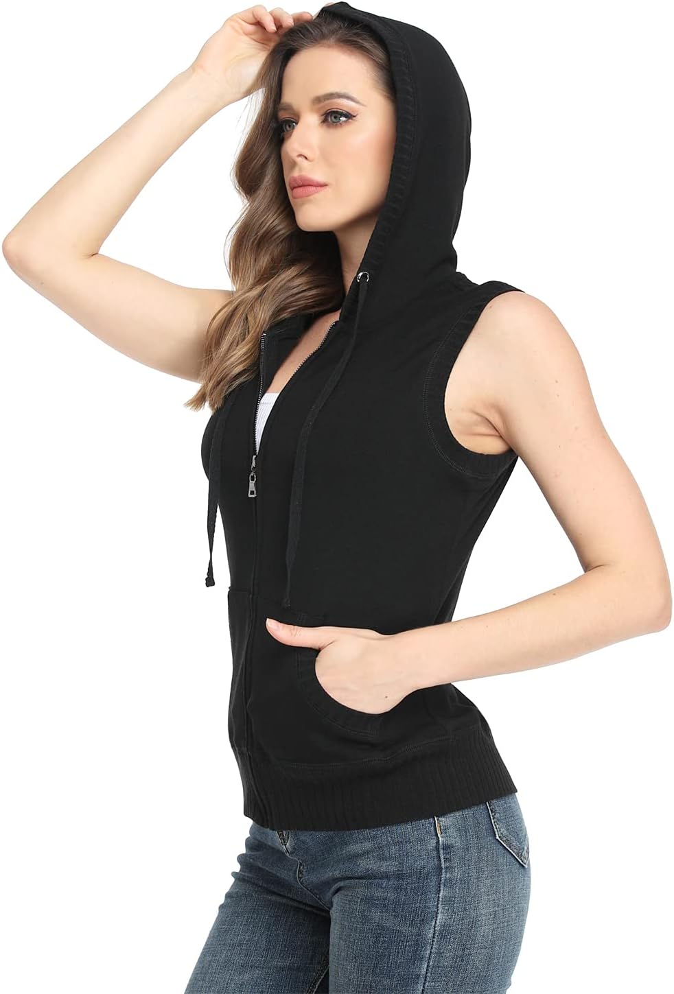 MISS MOLY Women’s Sleeveless Hoodies Sweatshirt Basic Solid Zip Up Vest Hoodie with Pockets