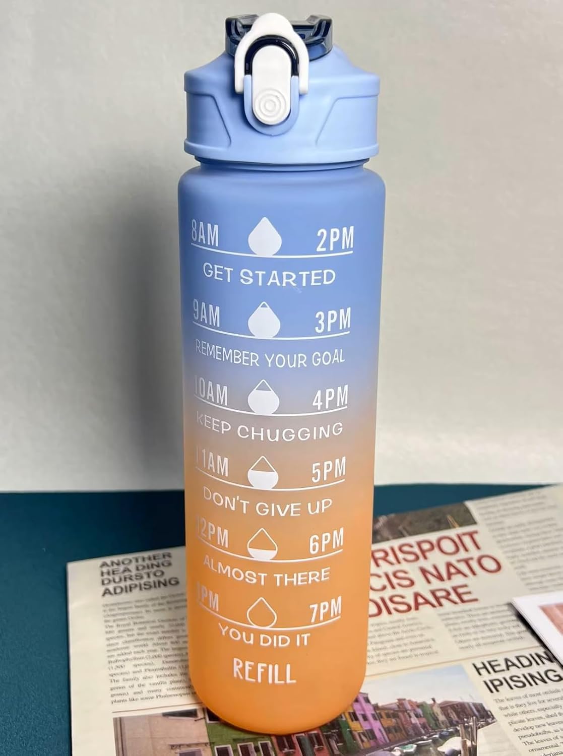 Keep motivated and hydrated all day with this trendy 30oz (900ml) motivational water bottle, designed to assist your wellness journey. That includes easy-to-read time markers and galvanizing phrases like “Get Began,” “Preserve Chugging,” and “Do not Give Up,” this bottle helps you monitor your water consumption from 8AM to 7PM — hour by hour. The attention-catching gradient design shifts from calming blue to vibrant orange , including a splash of shade to your day whereas making hydration really feel easy and enjoyable. Produced from sturdy, BPA-free plastic, it features a flip-top lid, a built-in straw, and a sturdy carrying strap, making it excellent for exercises, college, workplace, or on-the-go existence. Customise your bottle with a set of bonus waterproof stickers — a playful technique to specific your character whereas staying on prime of your well being objectives. The wide-mouth opening permits for straightforward cleansing and including ice cubes, whereas the leakproof lid retains your bag dry and your drinks safe. Whether or not you’re chasing health milestones or simply attempting to drink extra water, this motivational water bottle is your excellent every day companion — purposeful, modern, and filled with encouragement.