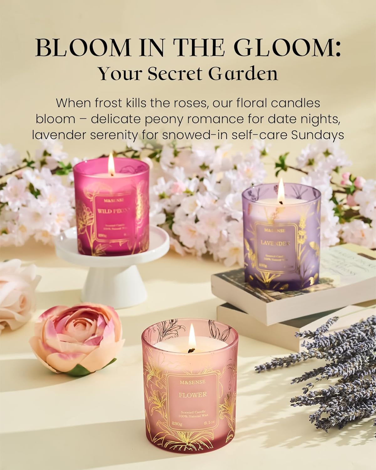 M&SENSE Lavender Candles,Vegan Soy,7.8oz 42-Hour Long Lasting Burning Time,Subtle Scented Candles for Relaxing Bathtub Aromatherapy Calming Sleep,Fancy Home Gifts for Women & Men