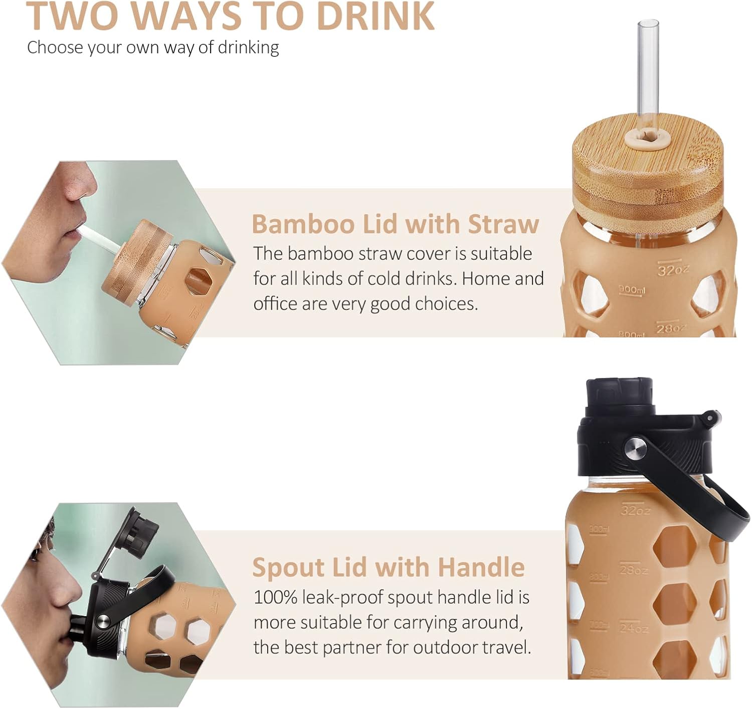 TWO LIDS DESIGN:Pure bamboo straw lid and leak-proof spout deal with lid -The bamboo straw lid makes sipping extra easy, permitting for simple hydration all through the day whether or not you are on the residence or workplace.-The spout permits easy liquid move and the deal with connected to the lid permits for simple carrying on the go.Appropriate for fitness center and outdoor.