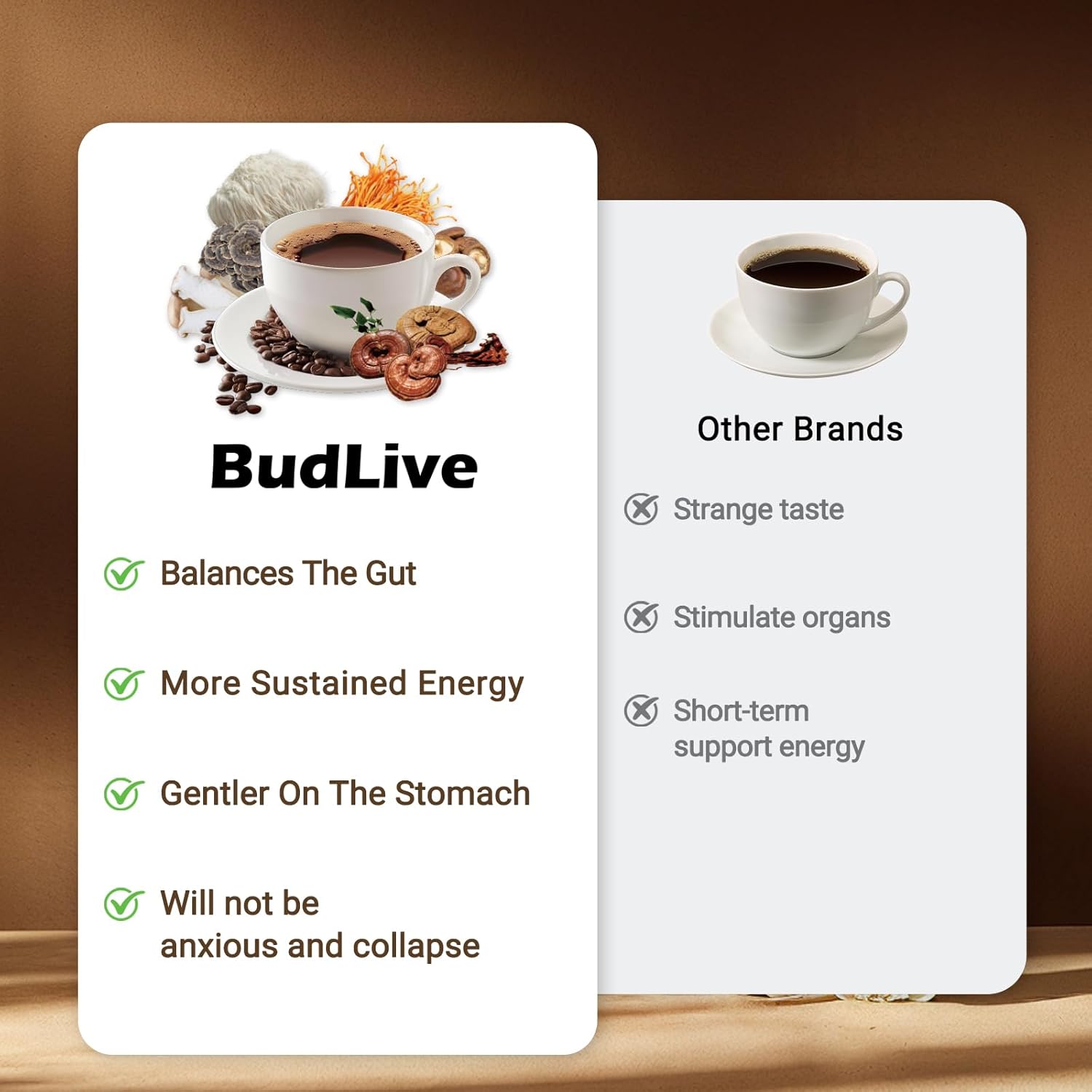 A More healthy Morning Ritual: Kickstart your day with BudLive Mushroom Espresso for a easy, energizing enhance. Full of adaptogenic mushrooms, it helps your well being objectives whereas satisfying your espresso cravings. (Word: Keep away from if experiencing gastrointestinal discomfort.)