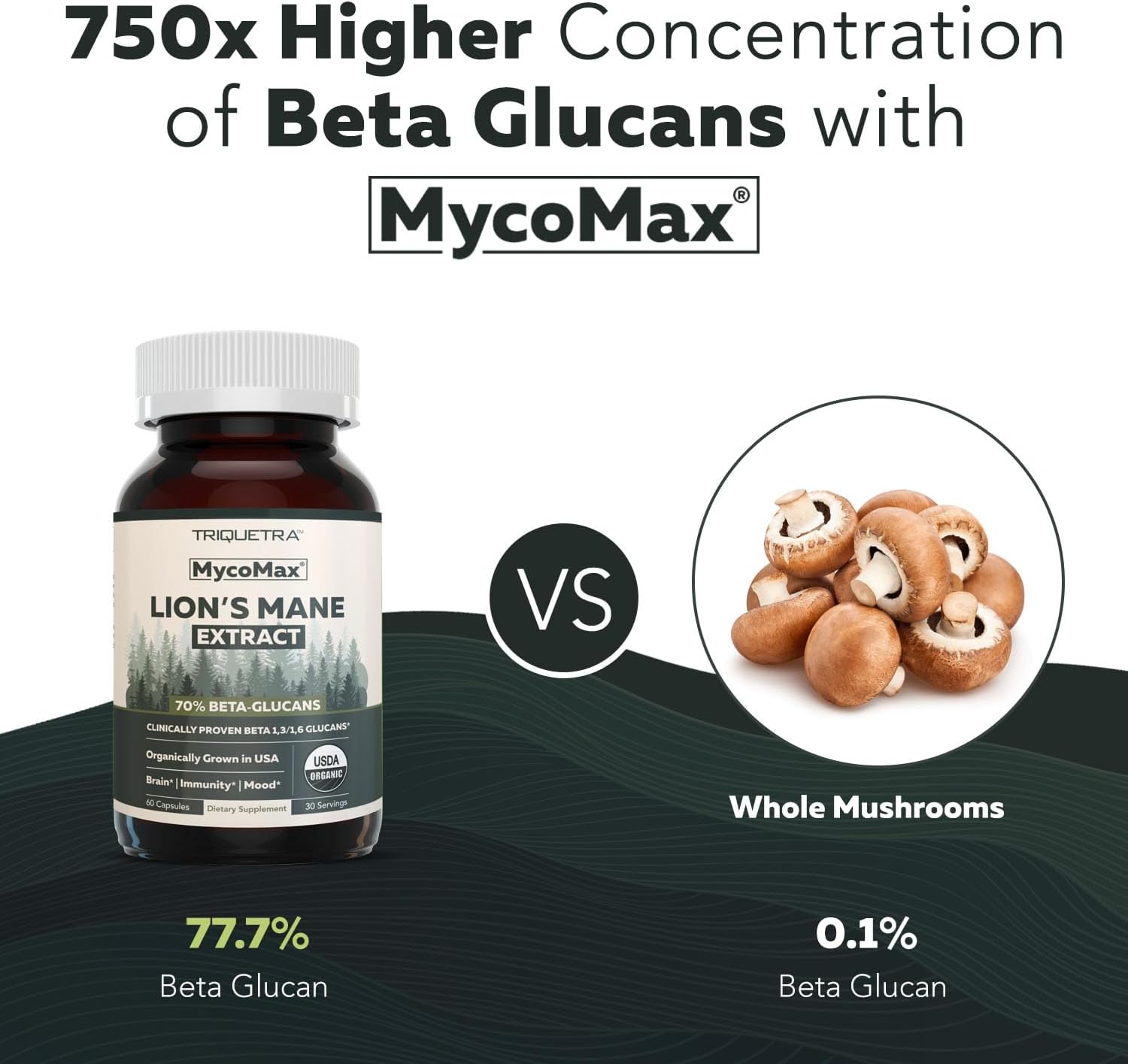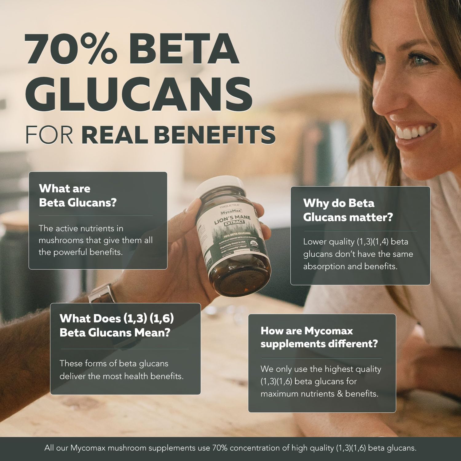 Highest Energetic Nutrient Ranges, 70% Beta-Glucan | Beta 1,3/1,6 Glucans: MycoMax is the max efficiency mushroom complement with over 70% focus of the important and clinically confirmed Beta 1,3/1,6 Glucans.