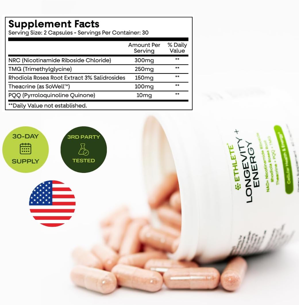 ENHANCE PHYSICAL RECOVERY AND MUSCLE STRENGTH – Enhance your physique’s means to get well and keep sturdy, wholesome muscle groups after intense exercises. With PQQ (10mg) and Nicotinamide Riboside Chloride, Ethlete NAD+ complement ensures you bounce again faster, minimizing downtime and maximizing power good points like by no means earlier than.