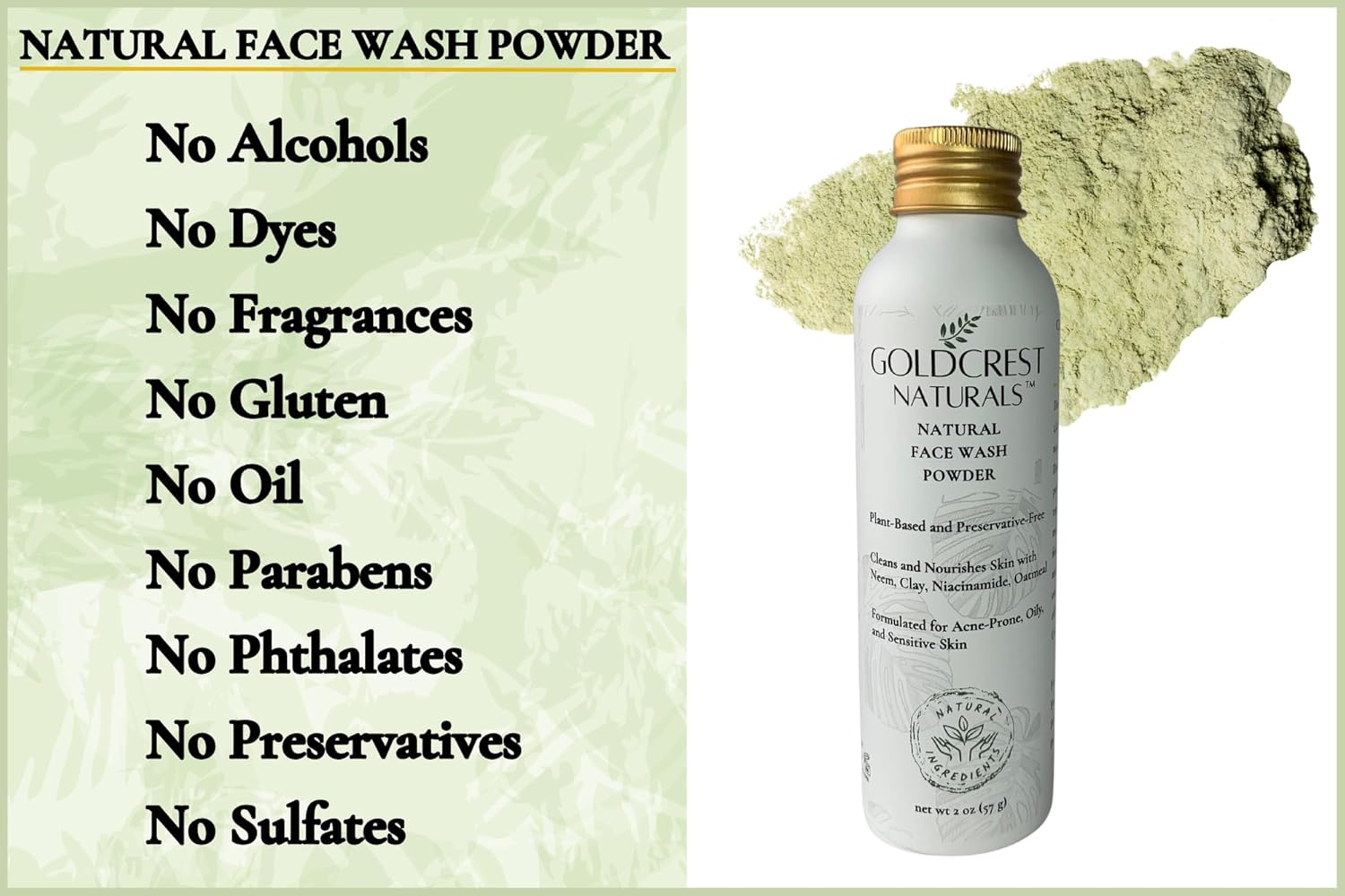 Natural Face Wash Powder–Waterless Cleanser for Acne-Prone, Oily, Sensitive Skin–Cruelty-Free, Plant-Based, Preservative-Free–Gently Exfoliates with Organic Neem & Niacinamide, 2oz