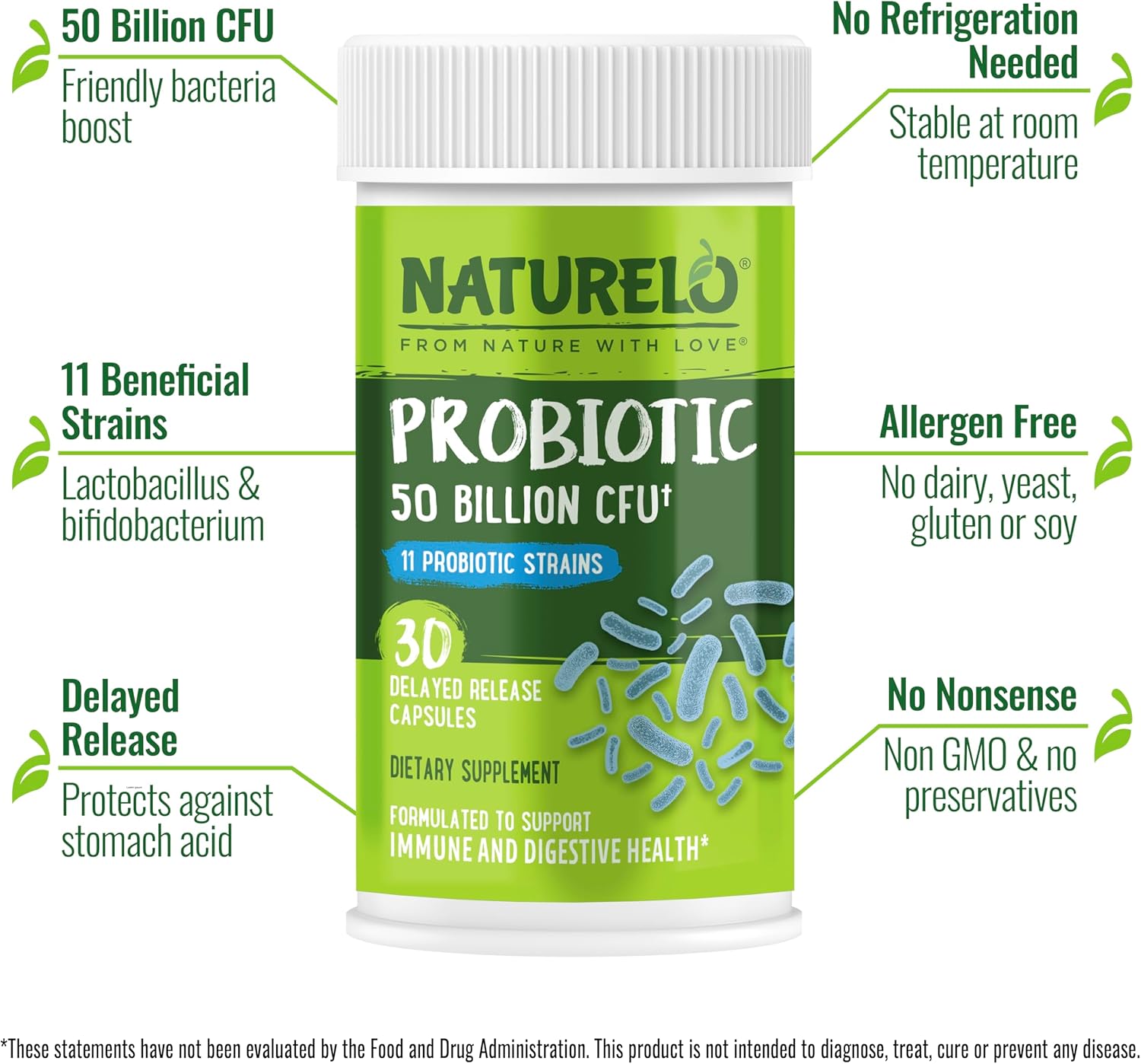 Be the first to review “NATURELO Probiotics for Digestive Health – 50 Billion CFU, 11 Strains Daily Supplement – Boosts Immune System, Delayed Release, 30 Vegetarian Capsules”