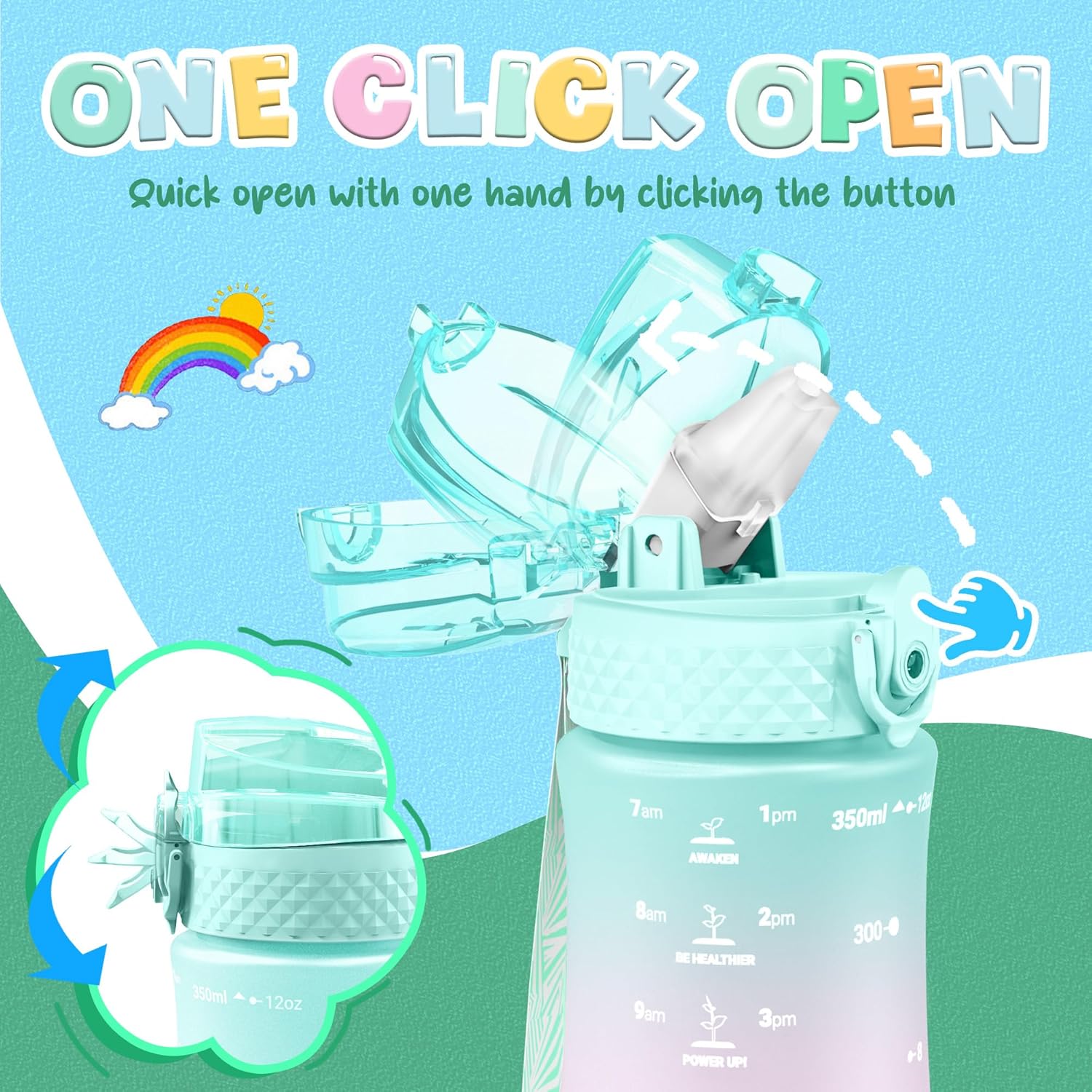 Be the first to review “OLDLEY Kids Water Bottle for School, 12 oz (2 lids) BPA-Free Reusable Leak-proof Durable Tritan Plastic Water Bottles with Straw & Chug Lids, Anti-dust Spout Cover (Mintpink)”