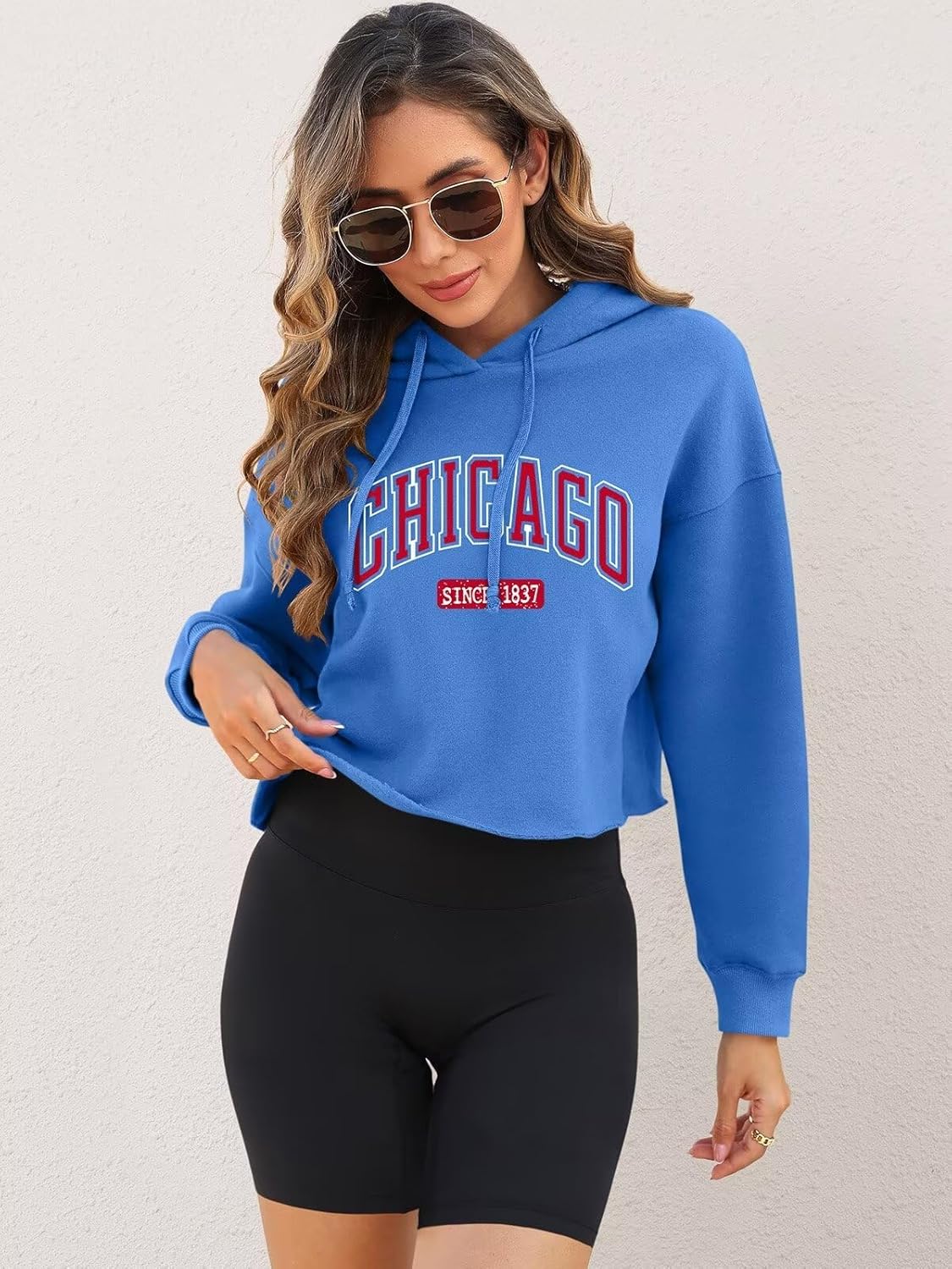 ORANDESIGNE Woman Letter Graphic Print Cropped Hoodie Long Sleeve Crop Fleece Casual Workout Loose Pullover Sweatshirt Tops