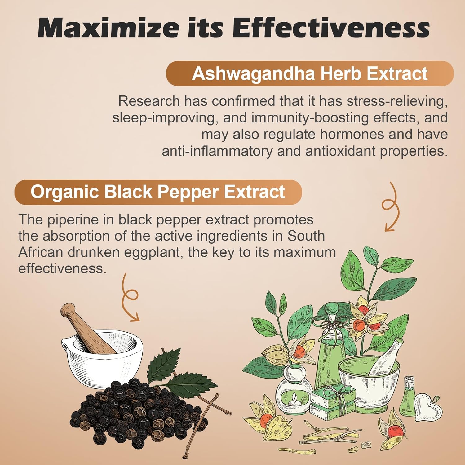 Extremely Efficient Components:Ashwagandha has the results of boosting immunity, help sleep, vitality, mind well being & relieving stress. When mixed with black pepper extract, the pepper extract considerably enhances the absorption fee and bioactivity of Ashwagandha by enhancing absorption and prolonging its results.
