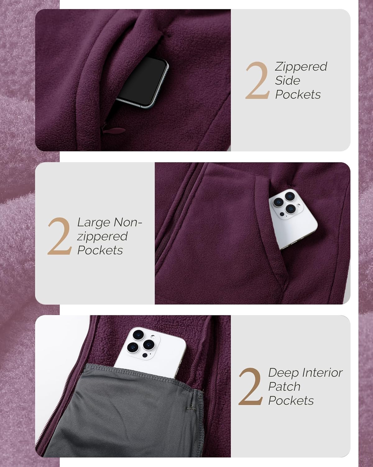 Outdoor Ventures Women’s Full Zip Hooded Fleece Jacket Coat with 6 Pockets, Warm Soft Polar Fleece Casual Hoodie Sweatshirt