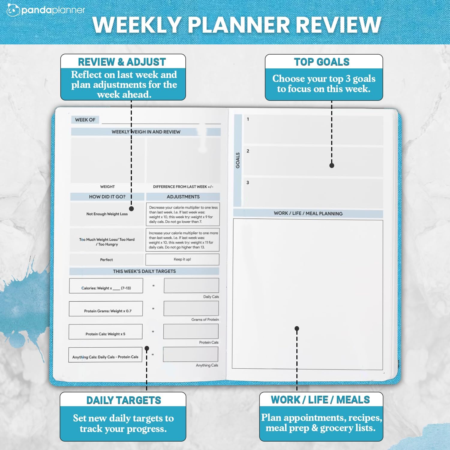 Panda Planner 2025-2026 Drop 20 Weight Loss Planner – Fitness Journal & Meal Tracker – 90-Day Undated Wellness & Workout Planner for Women & Men Soft Fabric Hardcover Organizer (Blue)