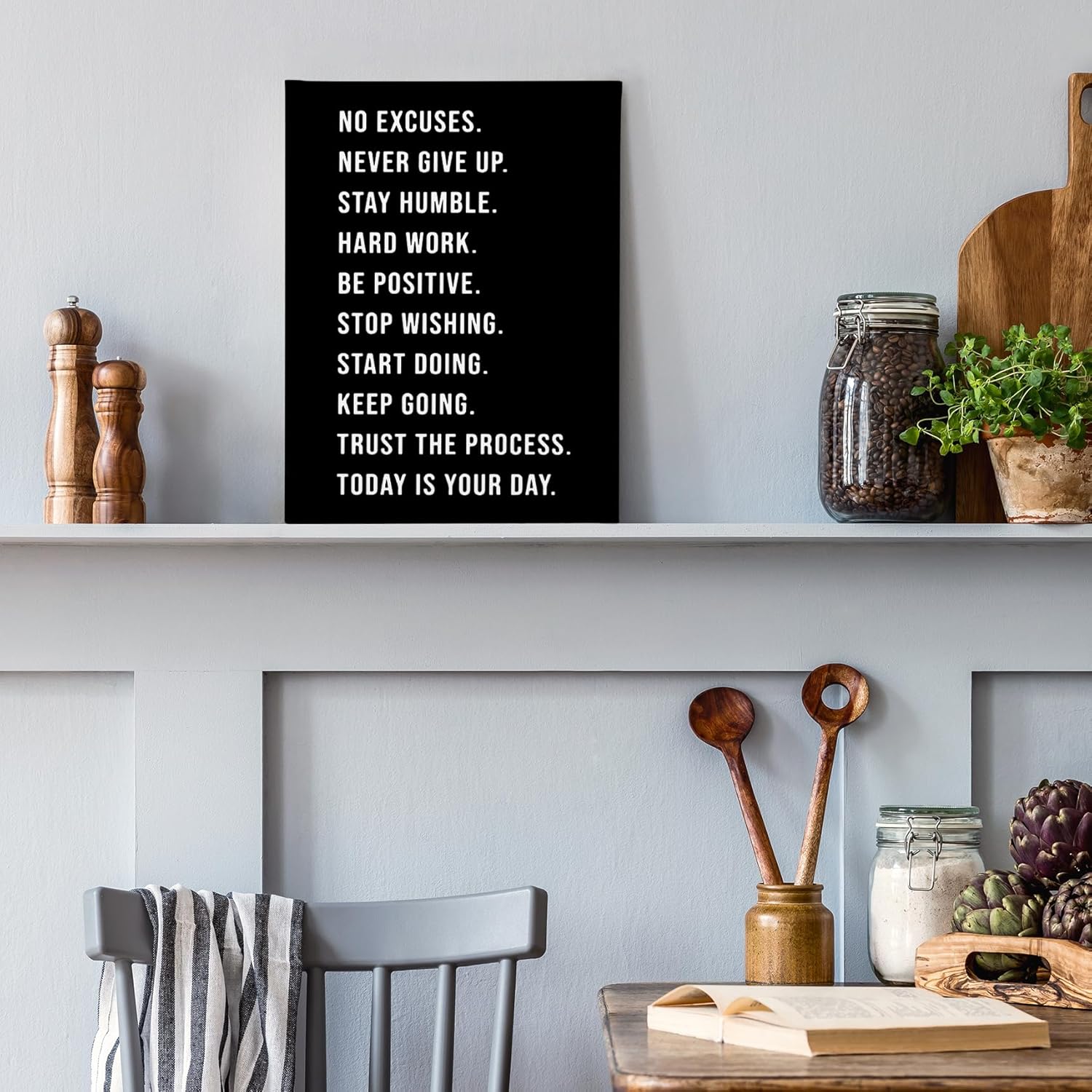 PHAMTE No Excuses Never Give Up Inspirational Workout Wall Art, Motivational Inspirational Print Framed Canvas Painting Artwork Home Gym Yoga Exercise Fitness Room Office Decor(11×14 Inch