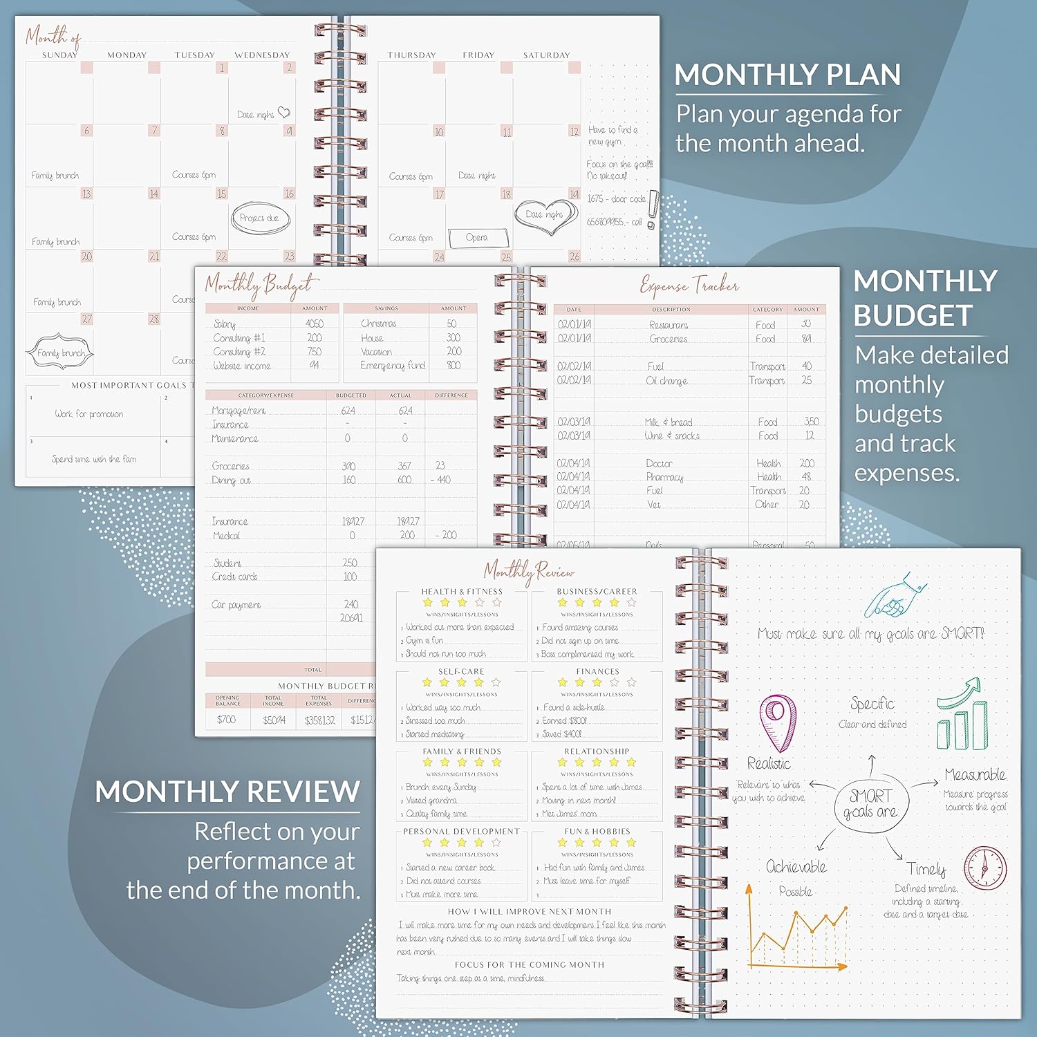 Calming coloration schemes to encourage focus and part tabs for simple navigation assist make sure you get probably the most out of your 12 months – personally, professionally, and financially.