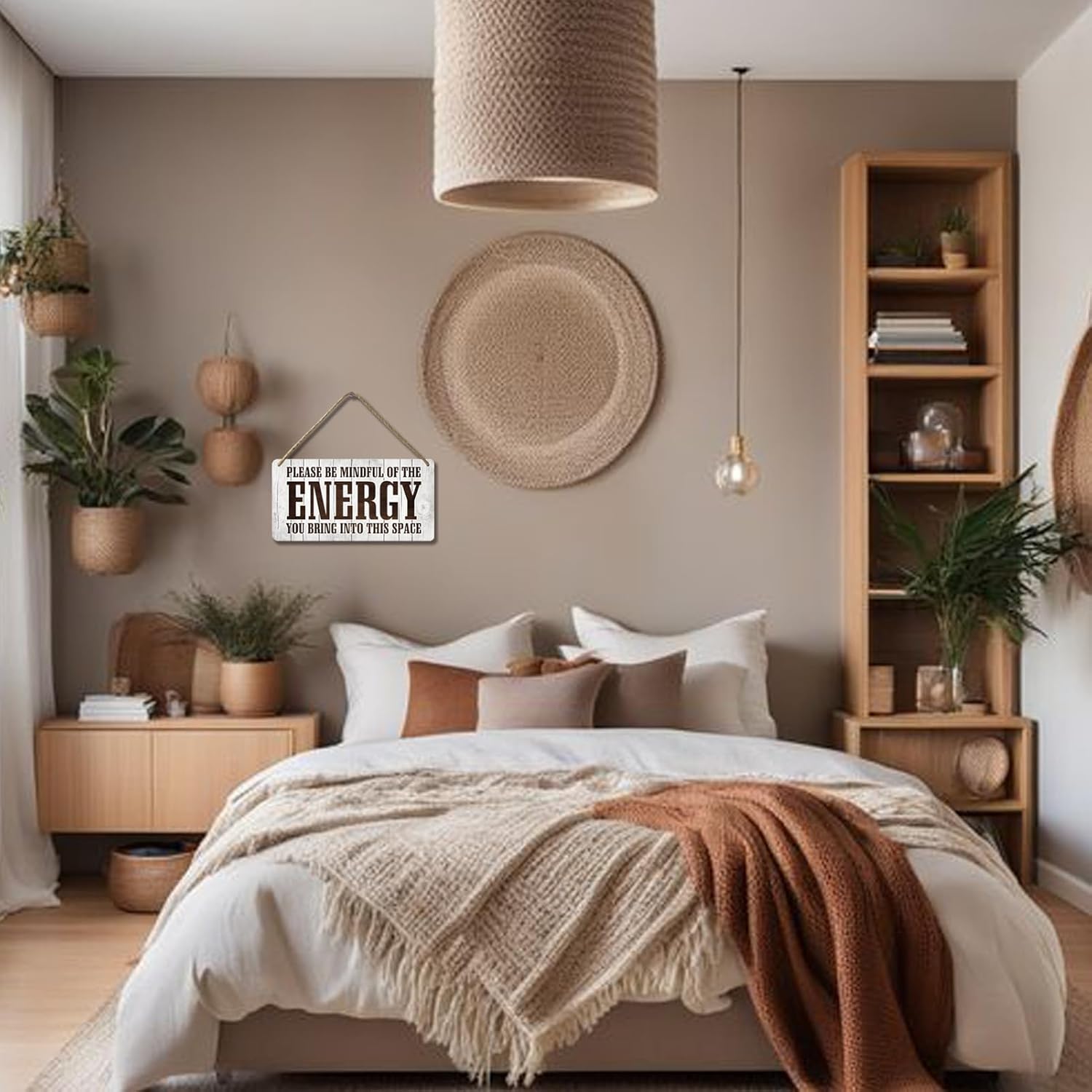 SIZE FOR POSITIVE AFFIRMATIONS WALL DECOR : 12 x 6 inch customized textual content ” Please Be Conscious Of The Vitality You Deliver Into This House ” so as to add enjoyable and coloration to your bed room.