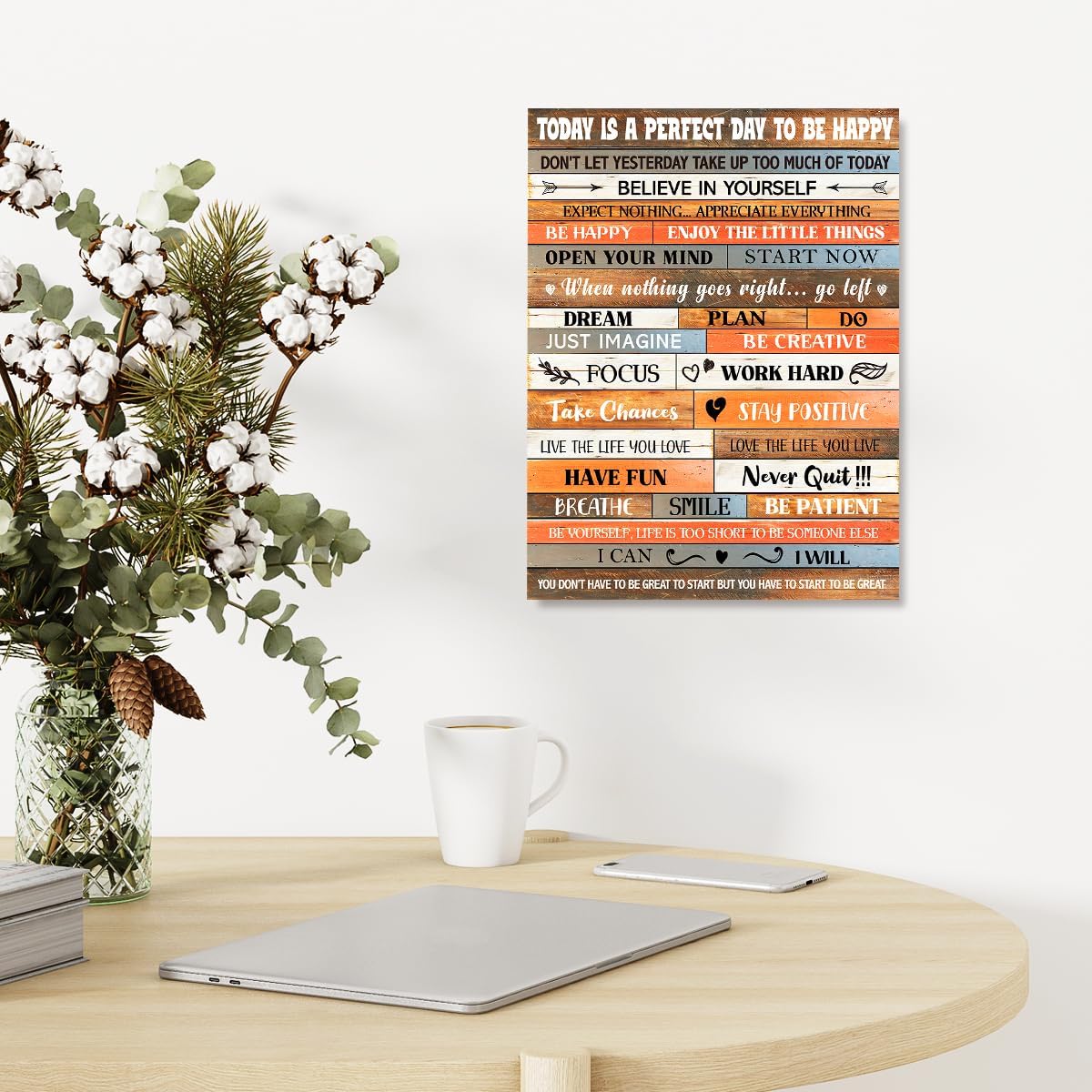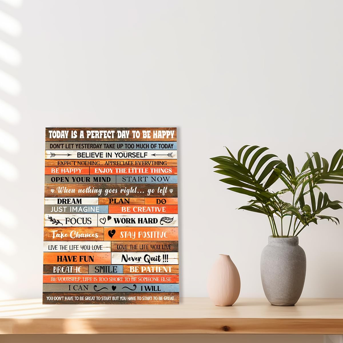 Positive Quote Inspirational Wall Decor,Today is A Day to Be Happy Wall Art Canvas Framed Print for Home Office Workplace Wall Decor 12 x 15 in