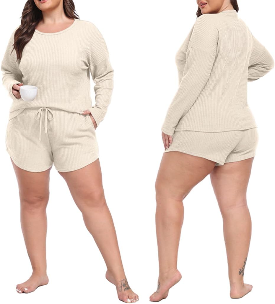 Pajamas Set for Women Waffle Knit Lounge Set 2 Piece Outfits Loungewear Pajamas Set for Women Waffle Knit Lounge Set 2 Piece Outfits Loungewear