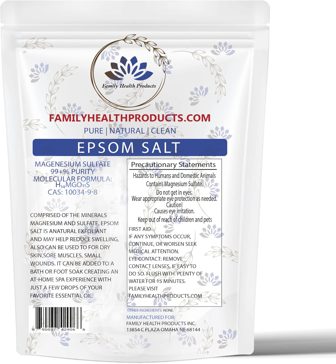 One 12-ounce resealable bag with Magnesium Sulfate unnscented