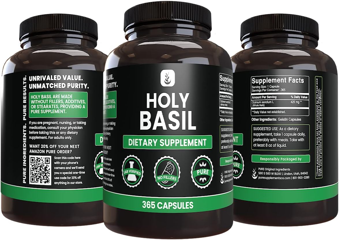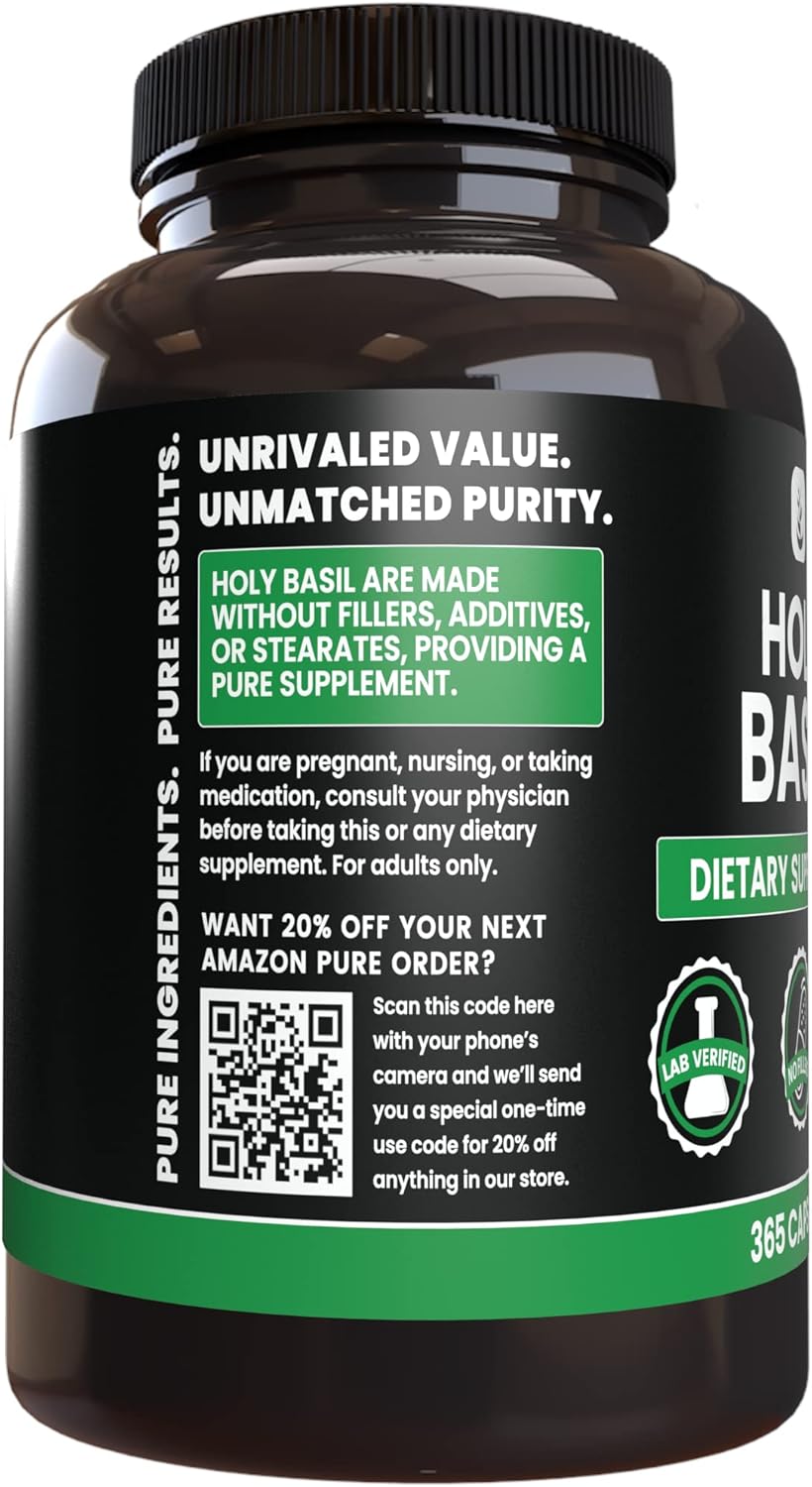 PURE ORIGINAL INGREDIENTS Holy Basil (365 Capsules) No Magnesium Or Rice Fillers, Always Pure, Lab Verified