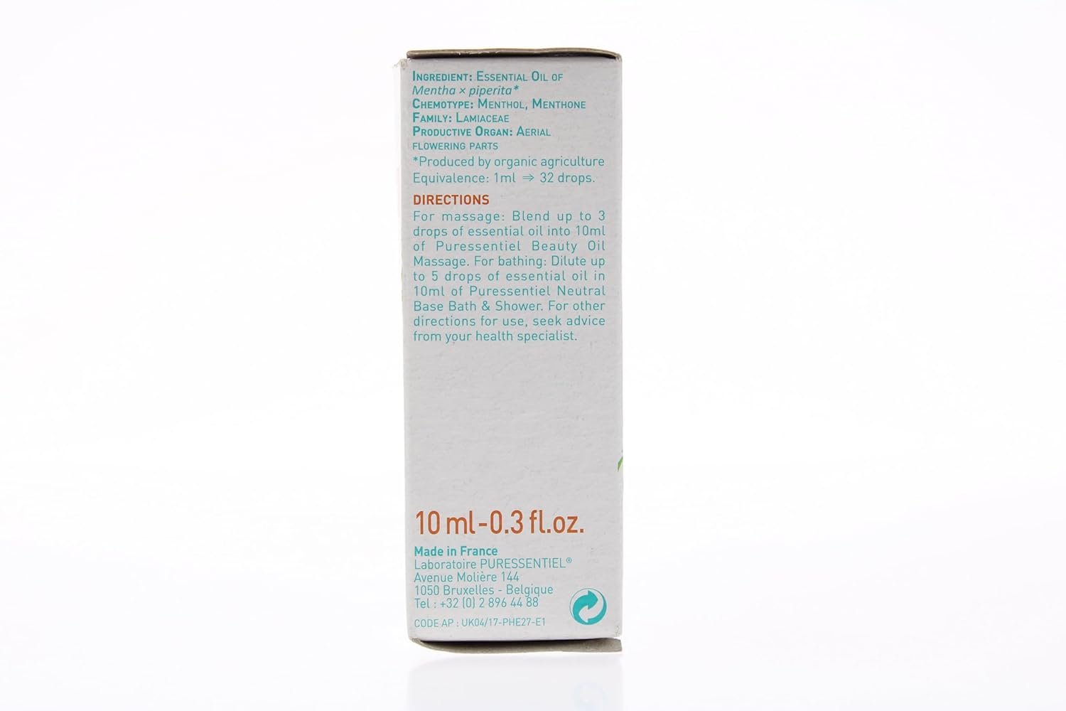 Puressentiel Organic Peppermint Essential Oil – 100% Pure and Natural – Minty, Fresh and 0.34 Oz