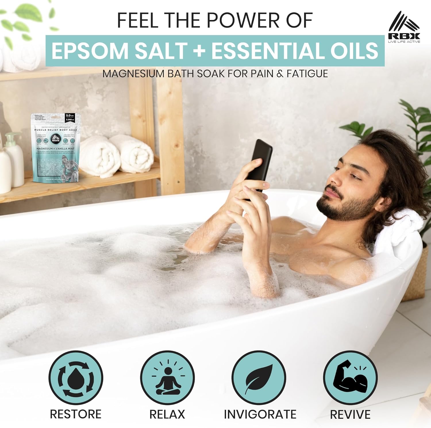 POWERFUL MUSCLE RELIEF & RECOVERY – Soothe sore, drained muscle mass after exercises with RBX Muscle Reduction Epsom Salt Tub Soak, enriched with magnesium flakes and premium bathtub salts. Good for alleviating ache, decreasing stress, and supporting quick post-exercise restoration whereas having fun with a refreshing Vanilla Mint scent.