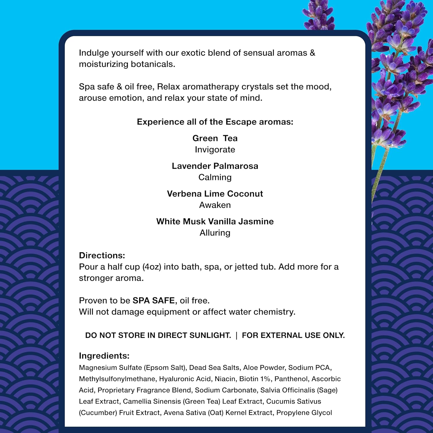 VITAMIN-INFUSED FOR SILKY SKIN: A mix of biotin, niacin, and hyaluronic acid brings pores and skin a delicate, hydrated end—refined components that complement the heat of your spa or scorching tub.